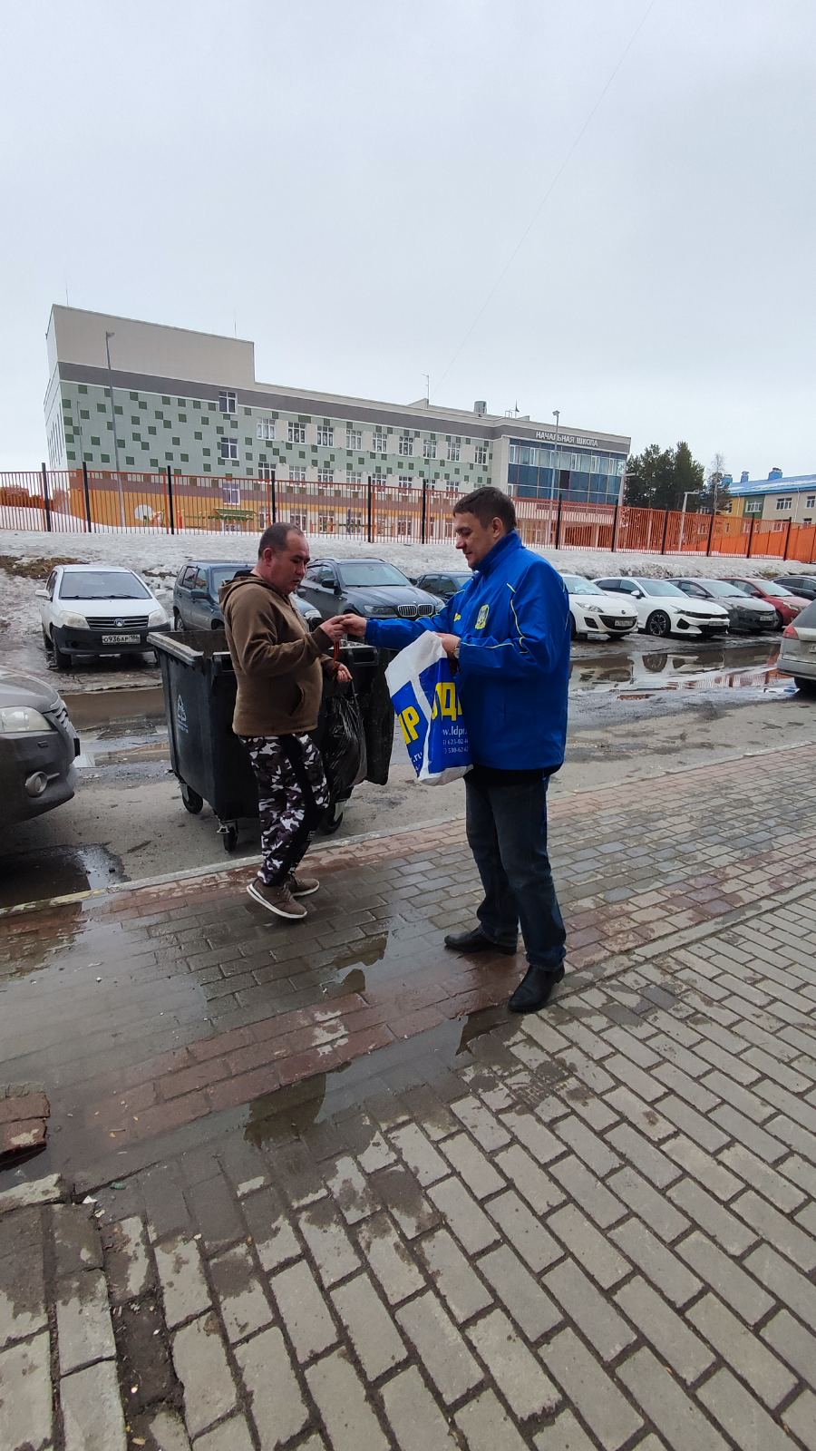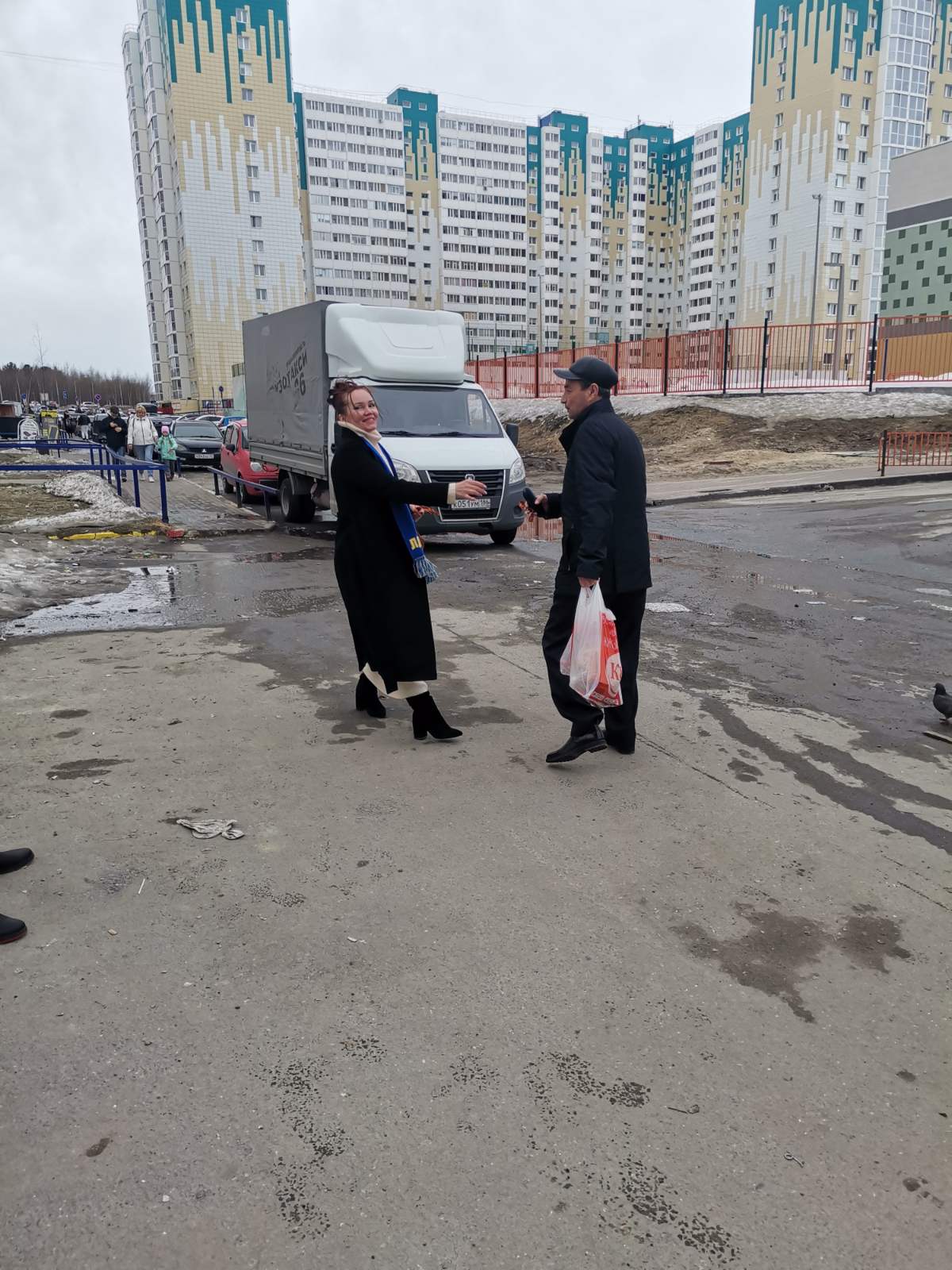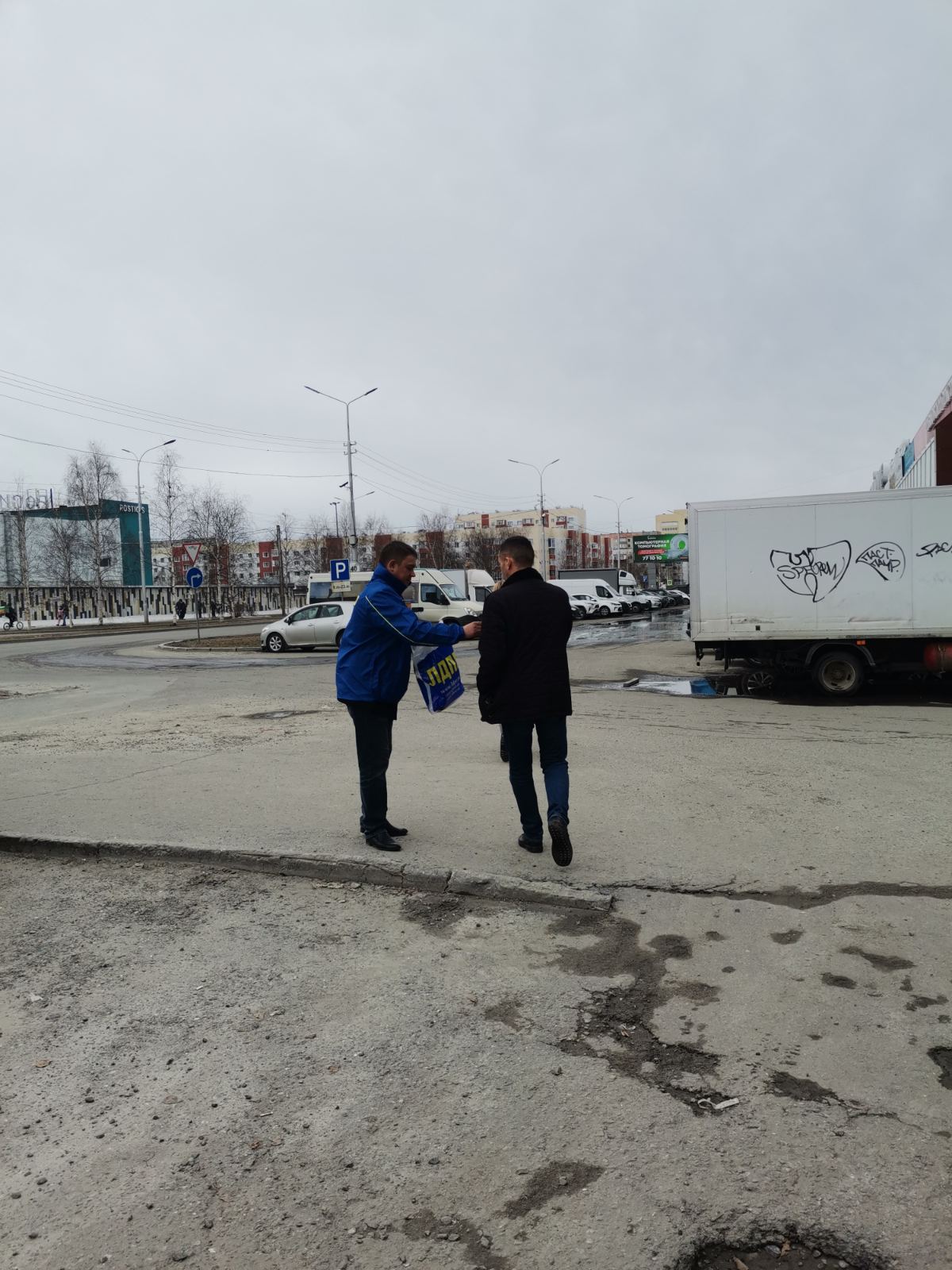 Координаторы первичных отделений Сургутского местного отделения ЛДПР в разных частях города поздравляют жителей с Днём Победы и вручают георгиевские ленточки