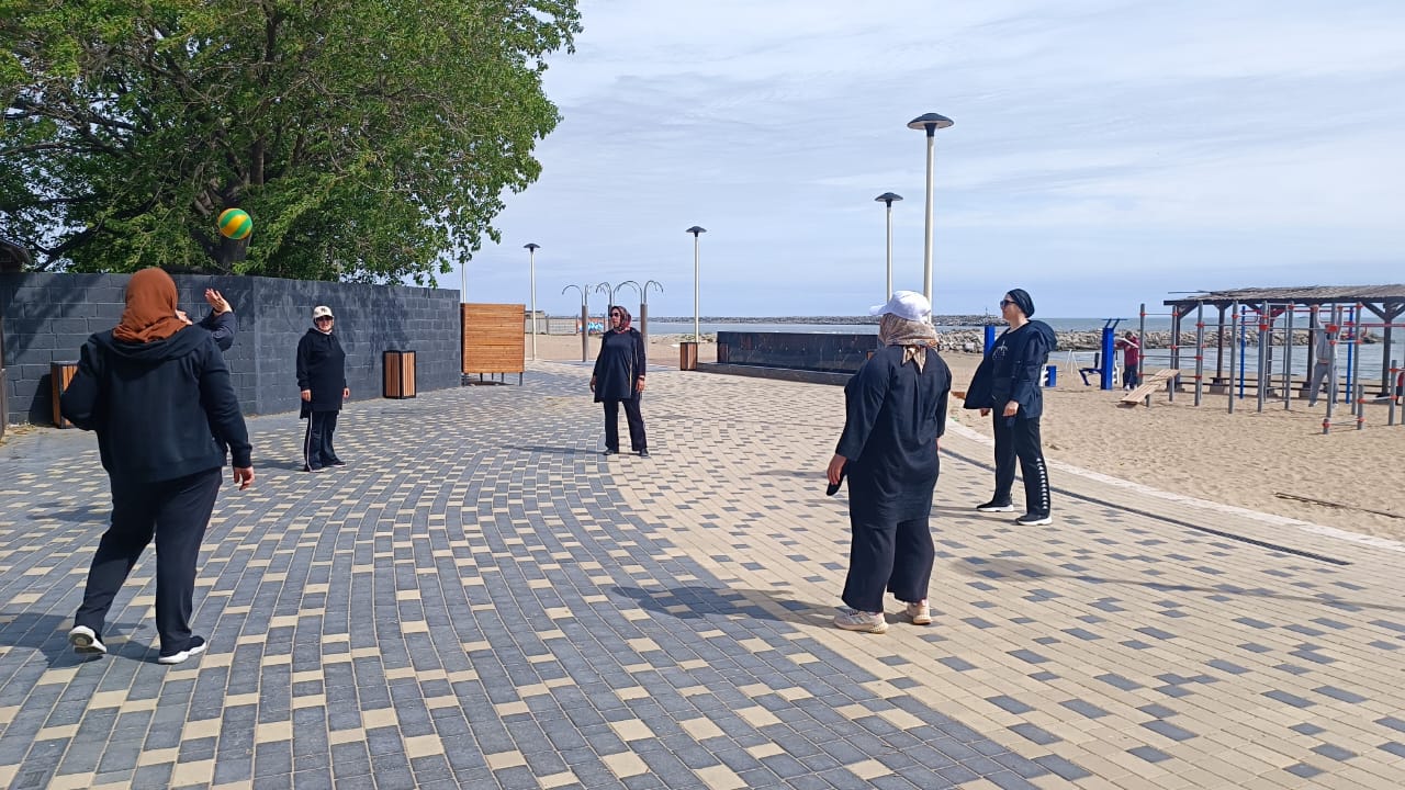 Тренировка началась с пешей прогулки вдоль берега Каспийского моря. Затем участники тренировки поиграли в волейбол.