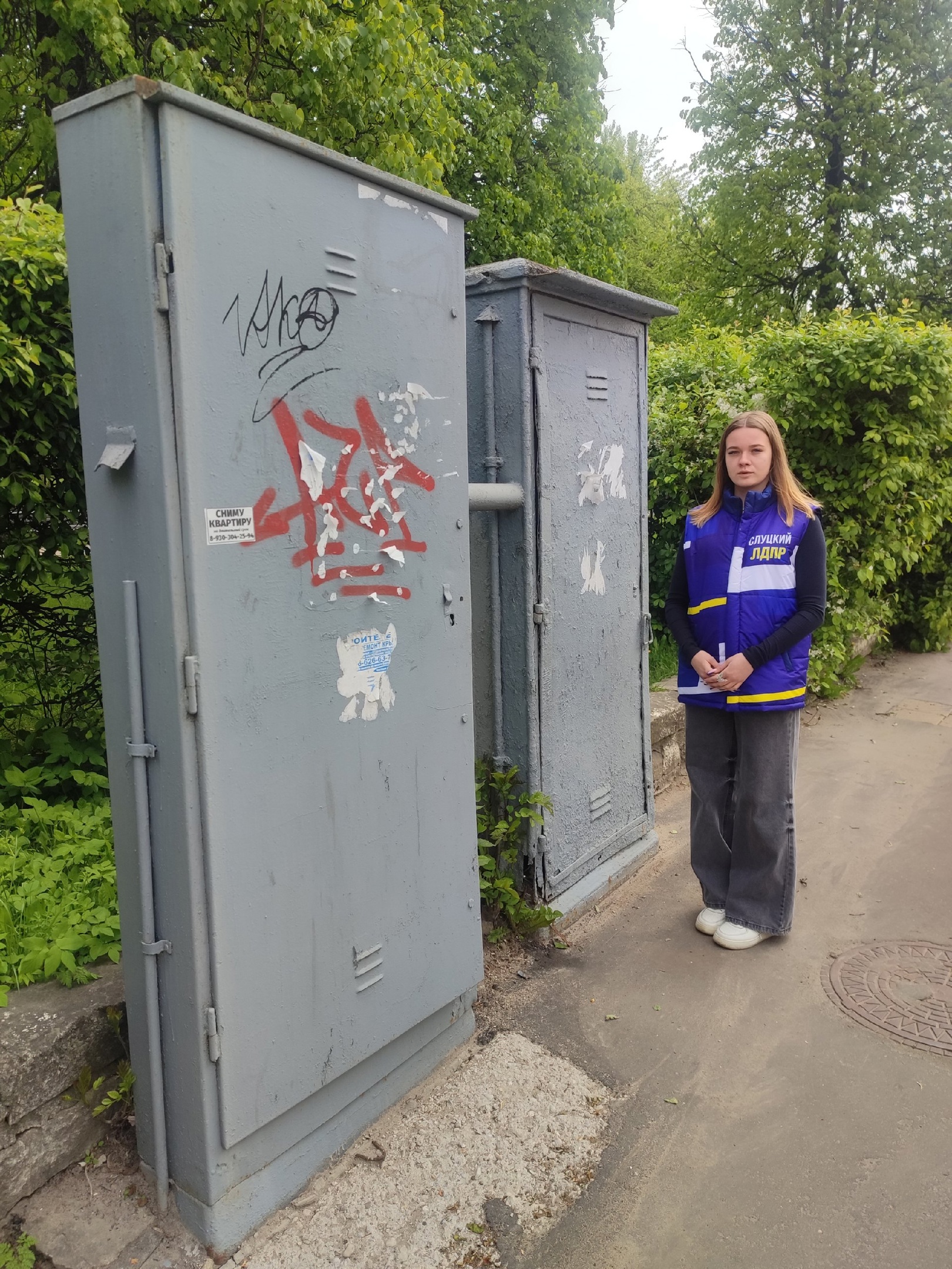 Руководитель Молодежной организации ЛДПР в Смоленской области Ангела Яшина, увидев, что электротехнические шкафы, расположенные в Смоленске на ул. Дзержинского, находятся в ненадлежащем виде, предложила вариант решения проблемы с пользой для облика города