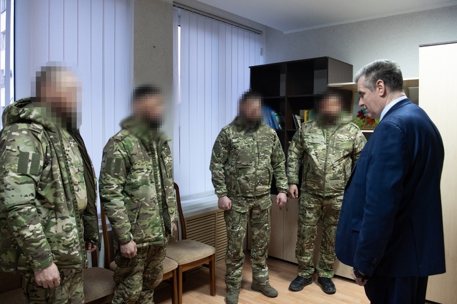 Председатель ЛДПР Леонид Слуцкий в ходе поездки в Луганск 1 марта встретился с военными, освободившими Авдеевку. Двое из присутствующих на встрече бойцов установили российский флаг на здании администрации взятого города