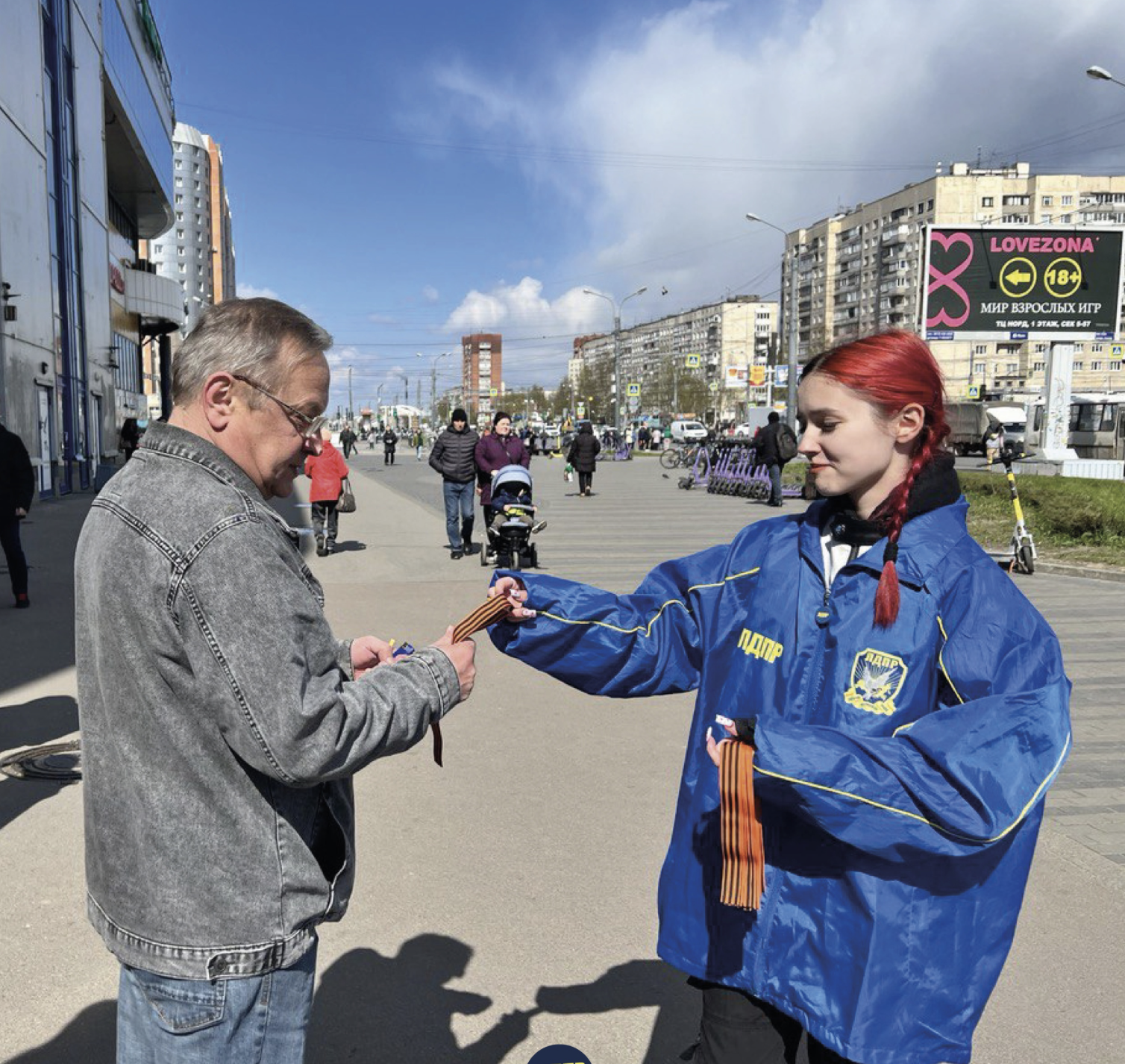В честь этого знаменательного события представители Молодежной организации провели акцию Георгиевских ленточек, раздавая всем желающим оранжево-черные гвардейские ленты.