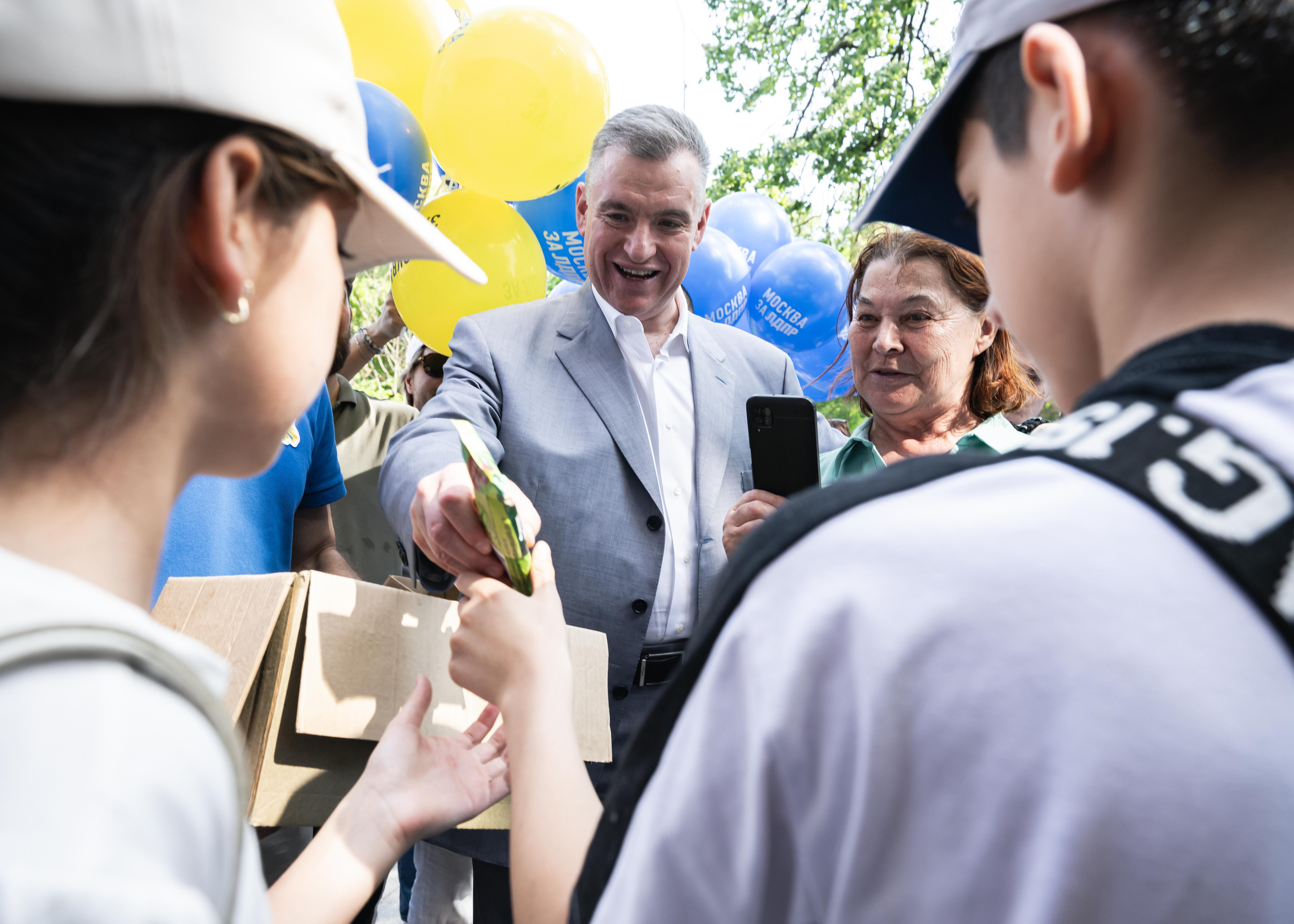 Леонид Слуцкий на Воробьёвых горах раздал мороженое в честь Дня защиты детей