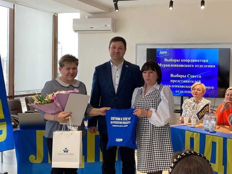 За активную жизненную позицию и неоценимую поддержку ямальских бойцов в зоне СВО руководитель фракции ЛДПР Заксобрания ЯНАО Денис Садовников вручил Благодарственное письмо волонтеру из Муравленко Наталье Коржаковой