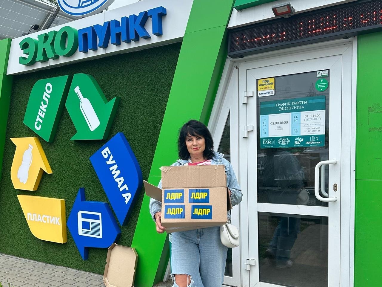 Помощник депутата Алла Лукьянова и координатор Сормовского отделения ЛДПР Наталья Михайлова передали бумагу и картон в пункт приёма вторсырья.