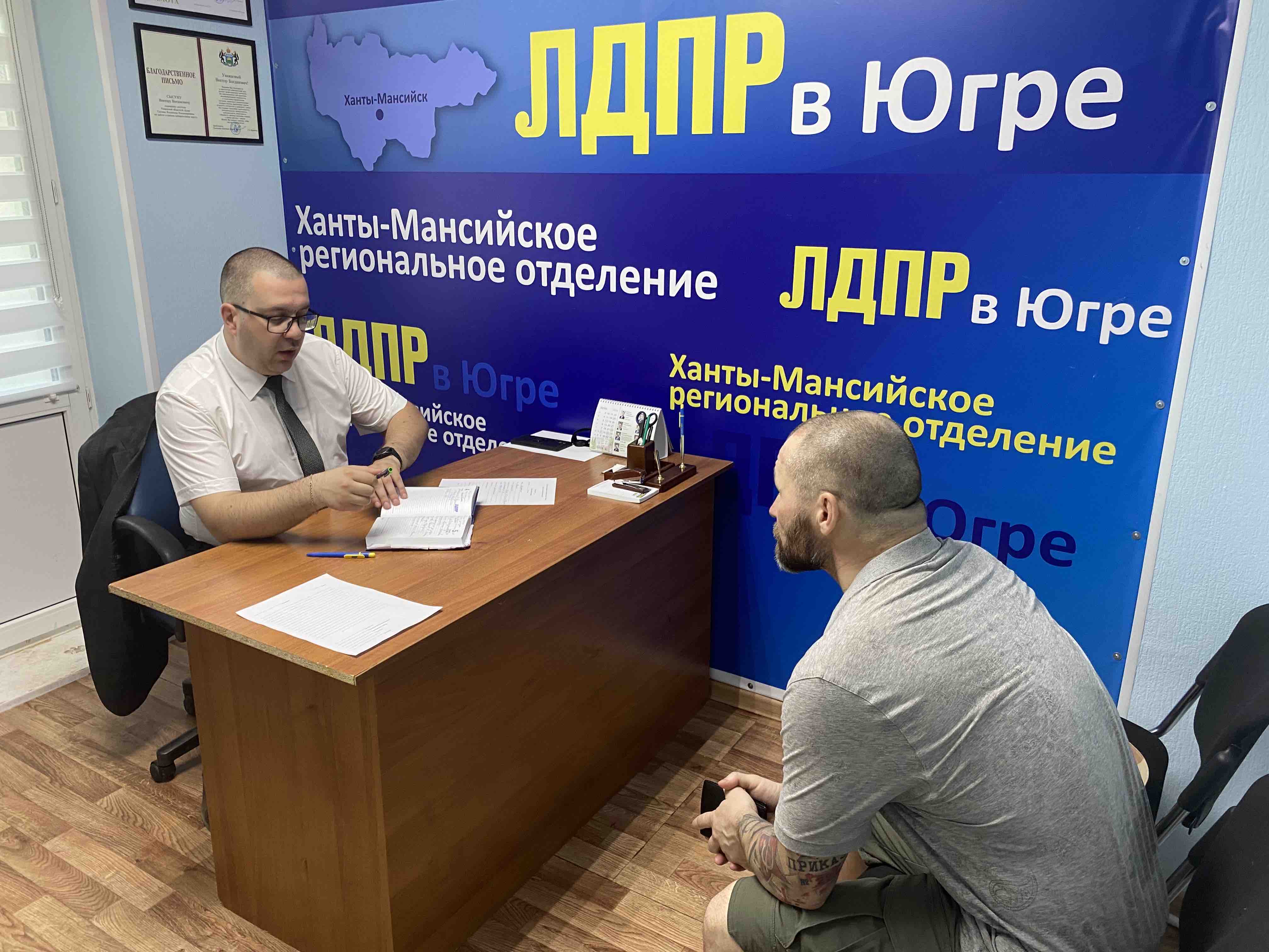 Руководитель фракции ЛДПР в Думе Югры седьмого созыва Виктор Сысун провел встречу в общественной приемной Сургутского местного отделения. Сургутяне пришли за помощью в решение ряда вопросов: изменения законодательства для семей с усыновленными детьми, получение жилья ветерану боевых действий, и оформление личного оружия на часть при уходе на СВО, чтобы не потерять лицензию.