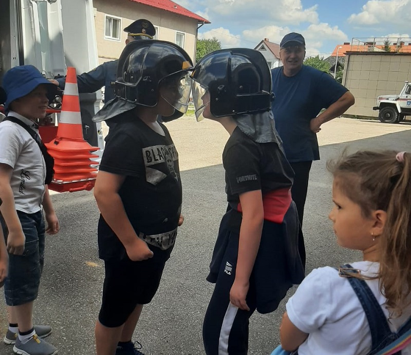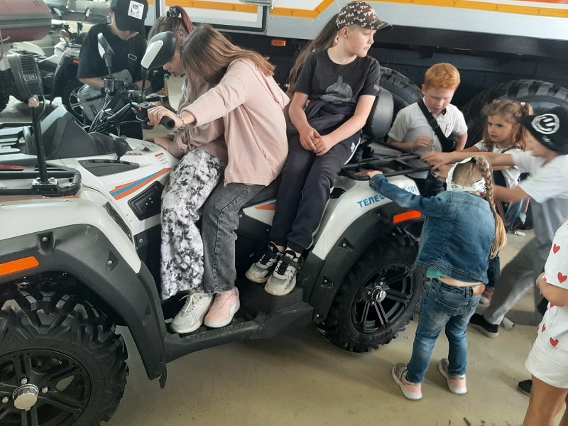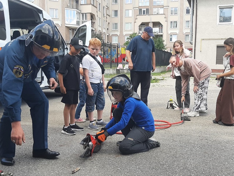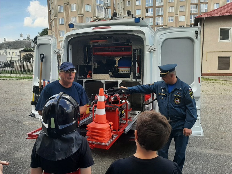 Затем ребят познакомили с работой спасателей, показали технику, средства защиты, которые используется для тушения пожаров и, конечно, рассказали о правилах безопасности.