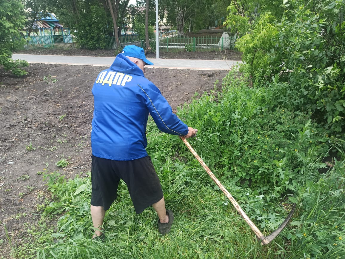 Партийцы скосили заросли травы, собрали мусор и привели территорию в порядок.