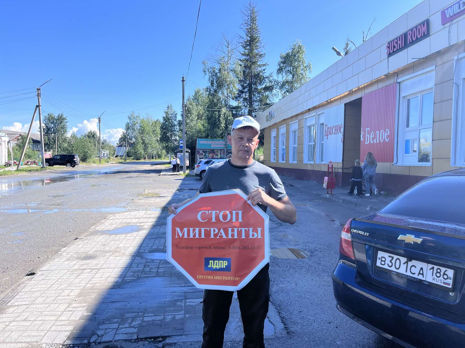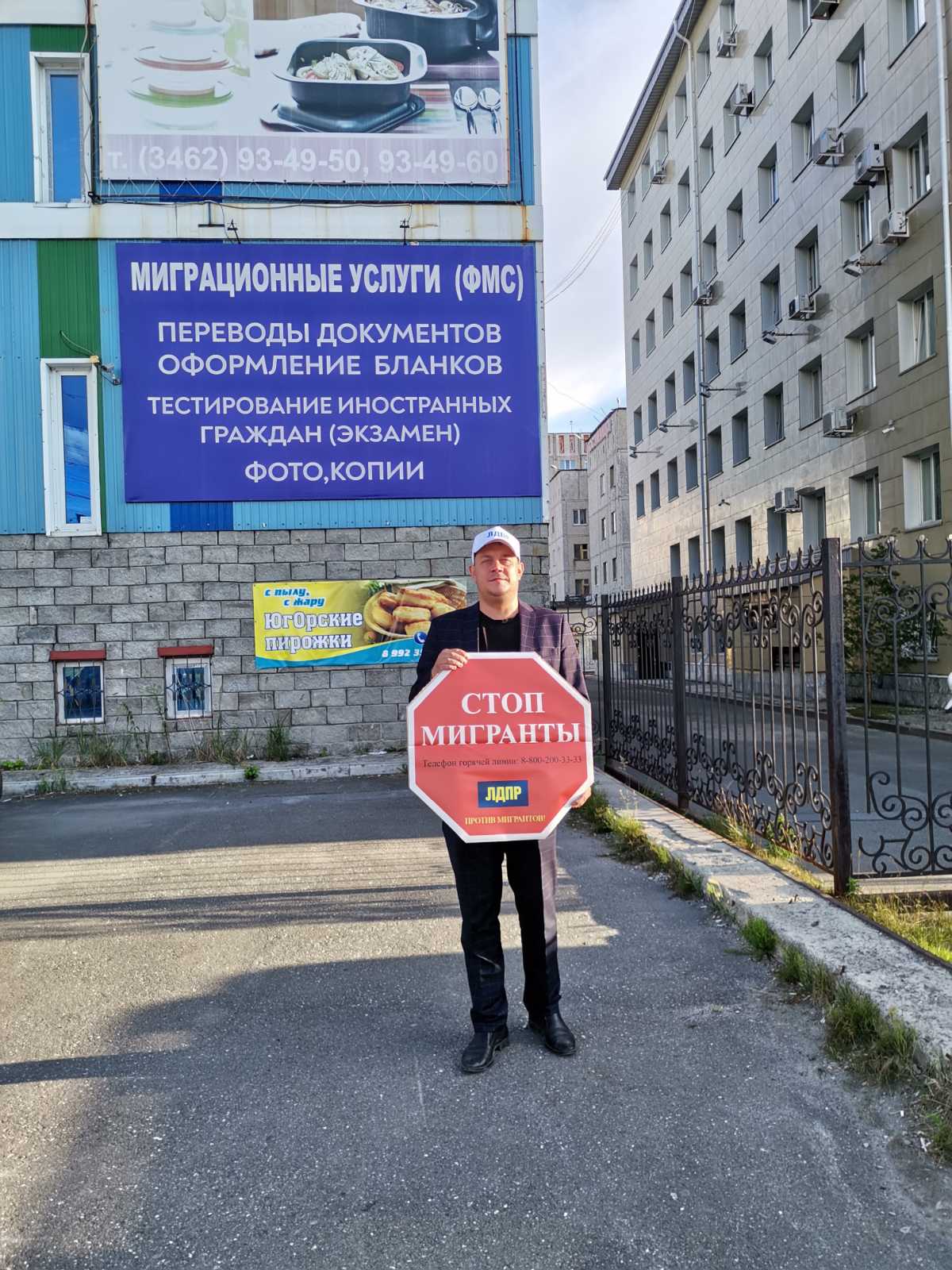 Активисты ЛДПР в различных городах и районах автономного округа Югра провели серию одиночных пикетов «Стоп мигранты». Пикеты прошли у отделов миграционной службы, а также рядом с учреждениями, которые предоставляют услуги иностранным гражданам