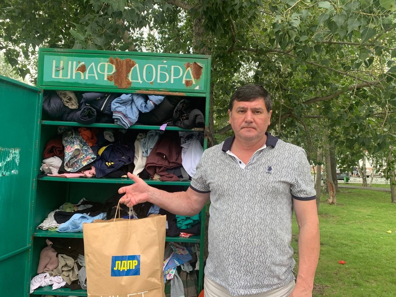 Руководитель аппарата Тюменского регионального отделения ЛДПР Владимир Сотников по старой доброй традиции привез одежду в «Шкаф добра» при Храме преподобного Серафима Саровского в районе Лесобазы города Тюмени