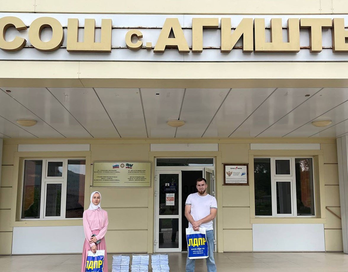 В преддверии нового учебного года представители ЛДПР в ЧР зам.координатора Чеченского Регионального отделения Умаров У.А. и член Совета депутатов с. Агишты от ЛДПР Ясаева М.Л. посетили местную СОШ. Школа находится в хорошем состоянии и готова к учебному году