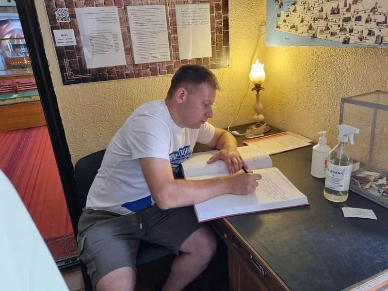 Оставляя запись в книге отзывов, Евгений Мишин от души поблагодарил экскурсовода и владельцев музея за такие интересные экспонаты и рассказанные истории.