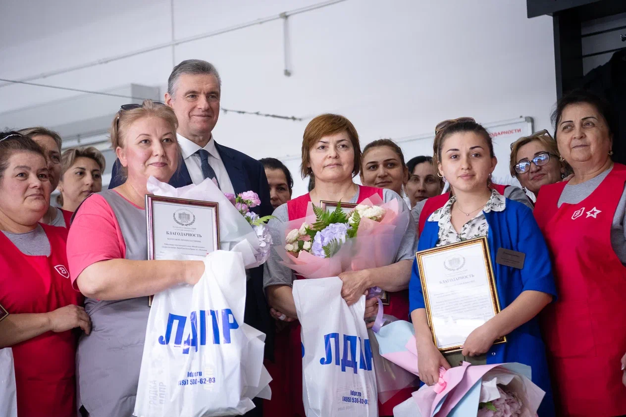 Там Леонид Слуцкий осмотрел цеха по пошиву вещевого имущества для военнослужащих и нужд государства, пообщался с коллективом и вручил благодарственные грамоты отличившимся сотрудницам. К Леониду Слуцкому лично обратились сотрудницы «Авангарда» с просьбой увеличить меры поддержки матерей, которые трудятся в военно-промышленной отрасли. Лидер ЛДПР согласился с тем, что необходимо пересмотреть порядок начисления пособий таким женщинам в связи с рождением у них ребёнка.