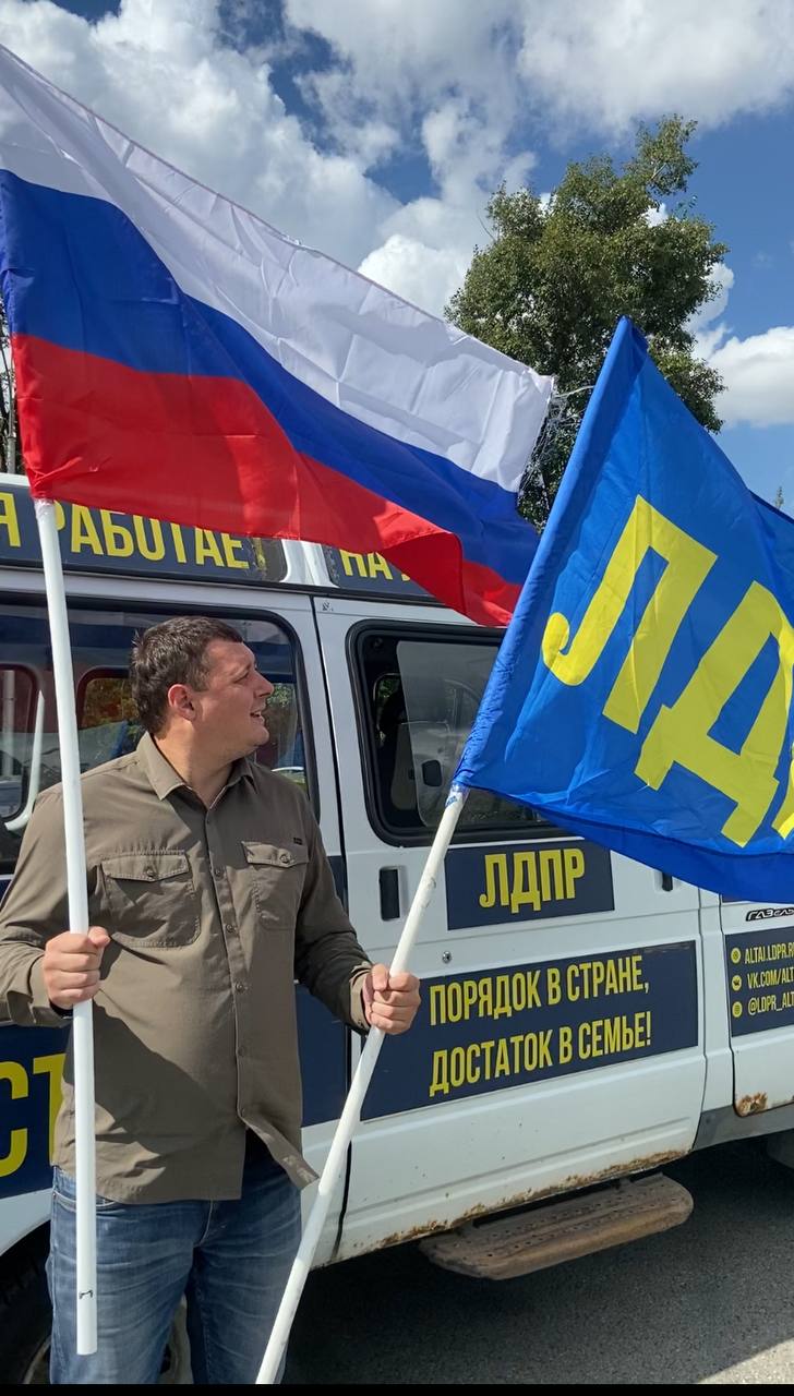 Алтайское реготделение ЛДПР совместно с координатором Сергеем Булаевым провело масштабный автопробег с флагами России и ЛДПР, приуроченный к празднованию Дня государственного флага Российской Федерации.