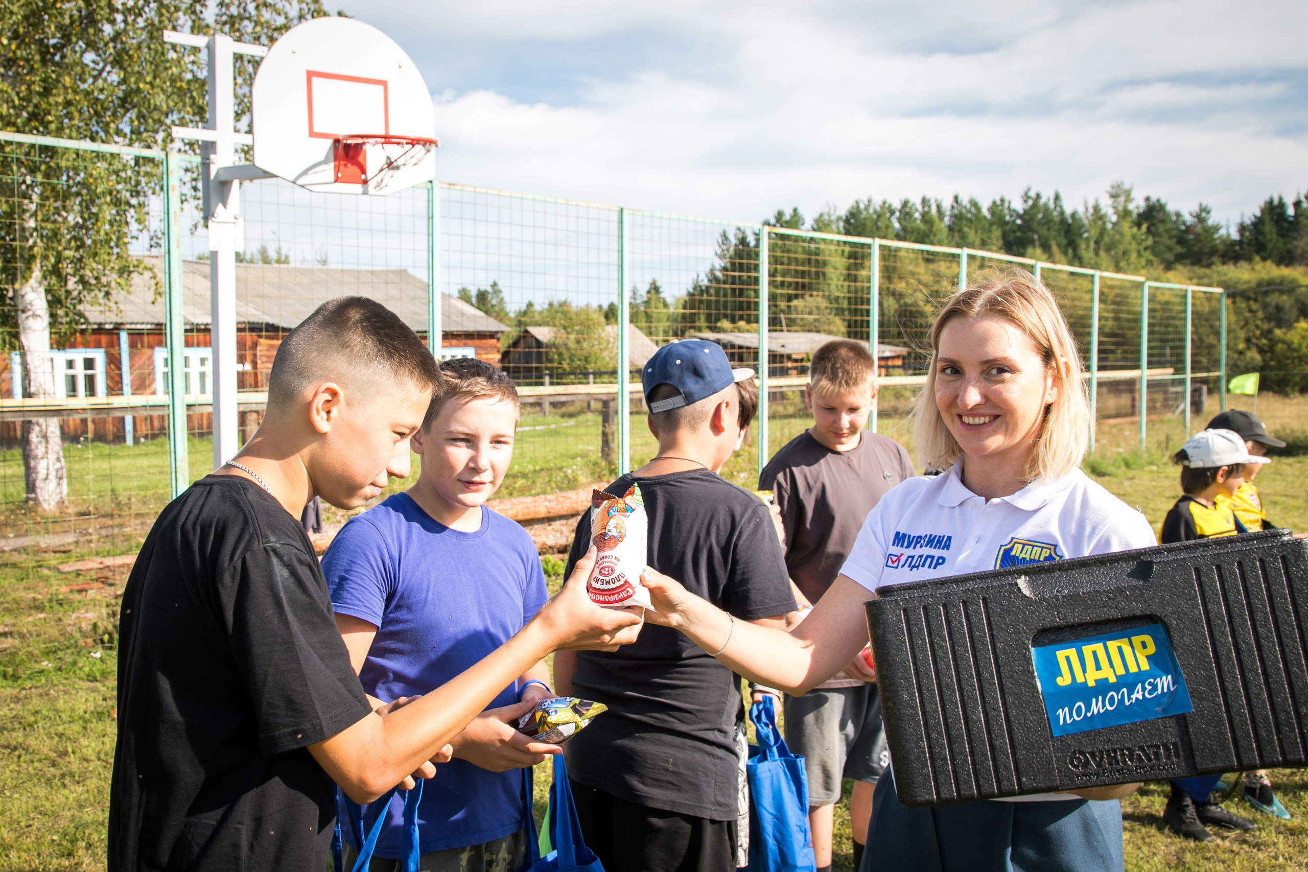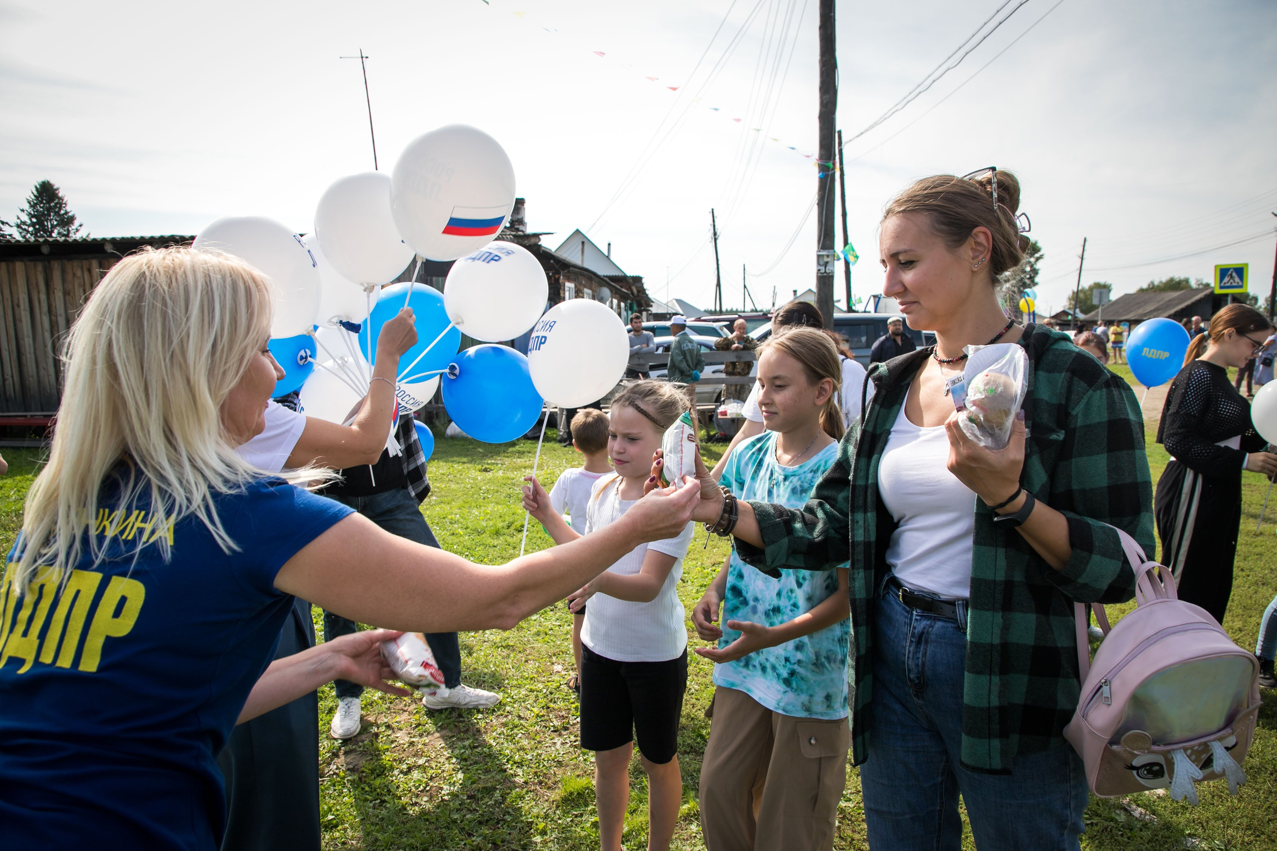 Активистки женского движения ЛДПР вручили подарки детям, участвовавшим в соревнованиях по футболу, а всем гостям мороженное и воздушные шары с триколором.