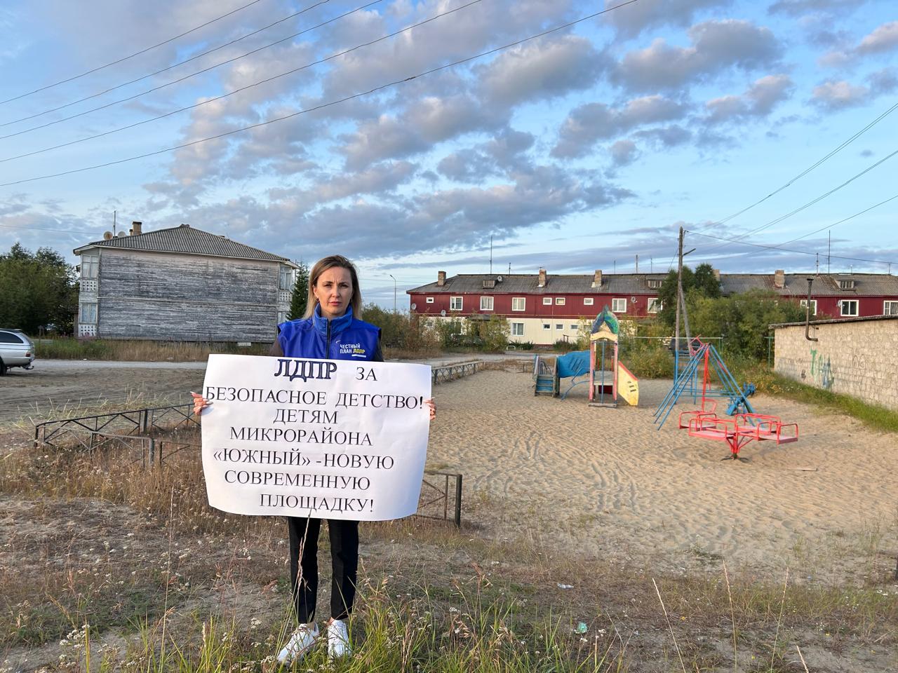 «В нашем микрорайоне много детей, а площадки в плачевном состоянии. ЛДПР за безопасное детство! Дети нашего микрорайона заслуживают новую современную площадку!» - подчеркивает она.
