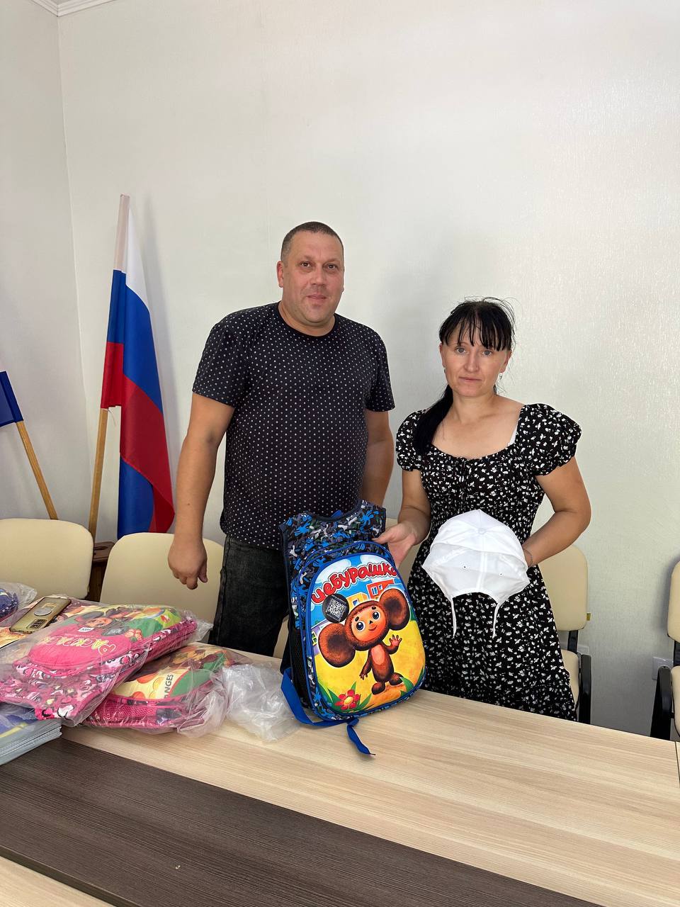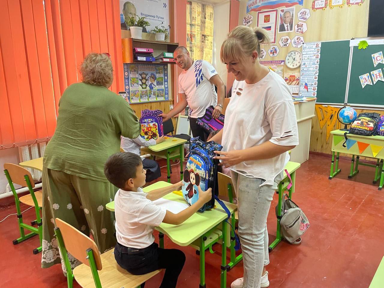 Депутат Ивановского муниципального округа Виктор Иванович Натаров встретился с родителями и детьми в Ивановской школе, передав им первую партию рюкзаков с канцелярскими принадлежностями.