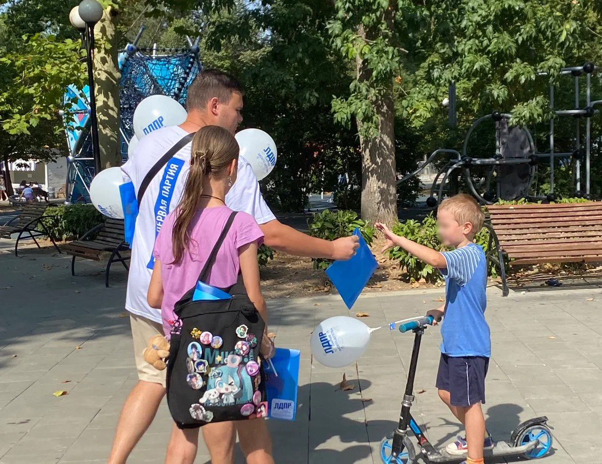 В День знаний в Севастополе в Комсомольском парке царила особая атмосфера праздника. Партийцы ЛДПР решили порадовать детей и их родителей, организовав акцию, в ходе которой маленьким горожанам раздавали шарики. Это событие привлекло внимание множества семей, которые пришли отметить начало учебного года