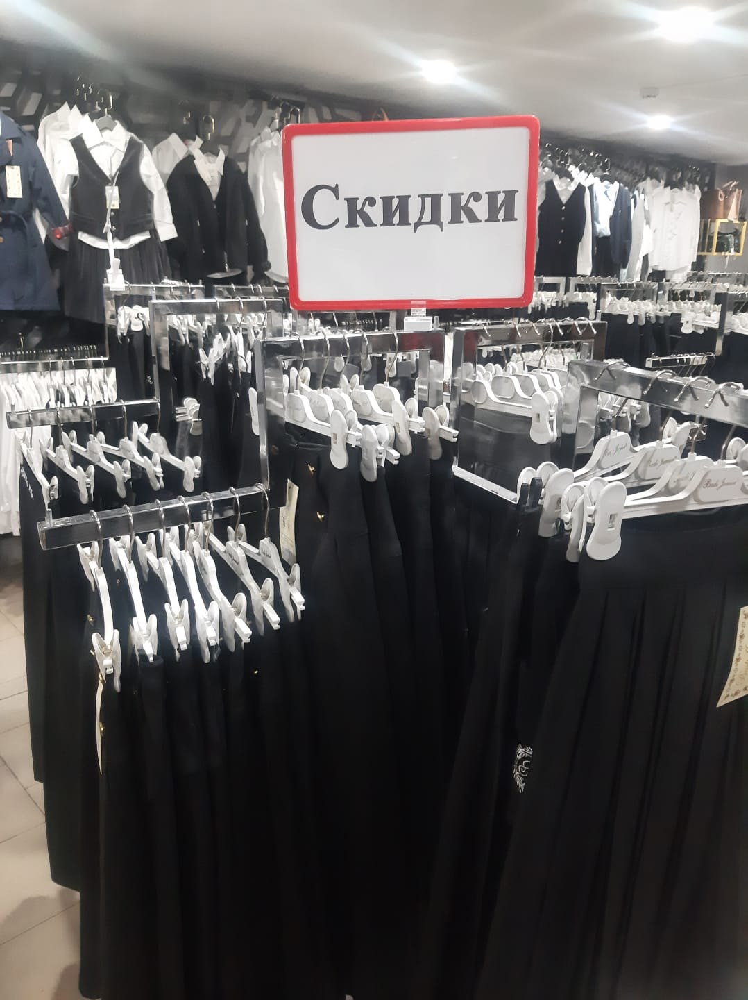 Наблюдаются скидки до 50% на прошлогодние коллекции одежды.