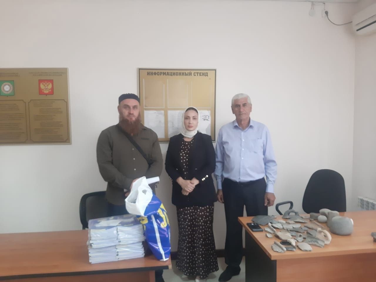 Член Совета депутатов Калиновского сельского поселения Таиса Мукаева по просьбе Обукосума Эскирханова, замдиректора Наурского государственного колледжа организовала его встречу с археологами Академии наук ЧР