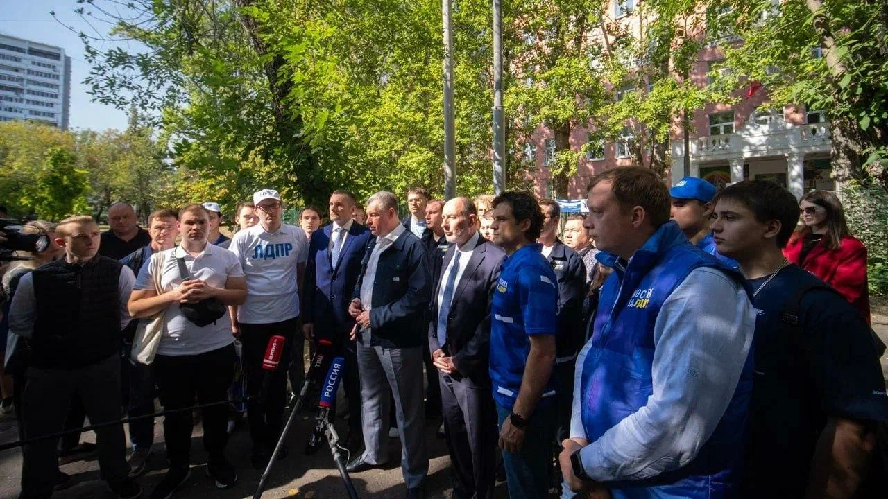 Леонид Слуцкий пришёл проголосовать на свой избирательный участок в школу № 1236 имени С.В. Милашенкова вместе с основателем и президентом Фонда за мир между народами и процветание, внуком бывшего президента Франции Шарля де Голля и общественным деятелем Пьером де Голлем. Также на избирательный участок в сопровождении Леонида Слуцкого пришёл кандидат в депутаты Мосгордумы от ЛДПР Евгений Обрезков, выдвинутый по 13 избирательному округу в Москве.