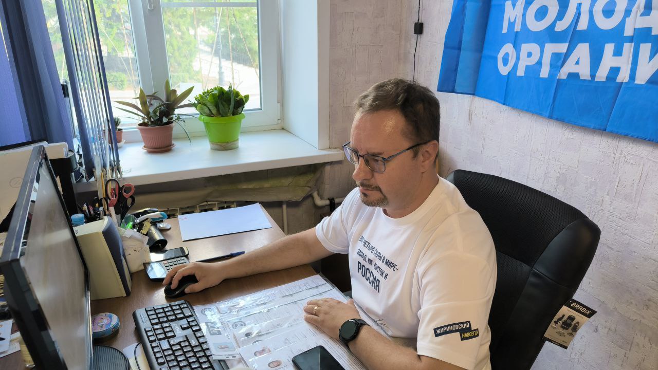 Помощник депутата Руслан Долгов обрабатывает заявления жителей региона, пожелавших вступить в ЛДПР