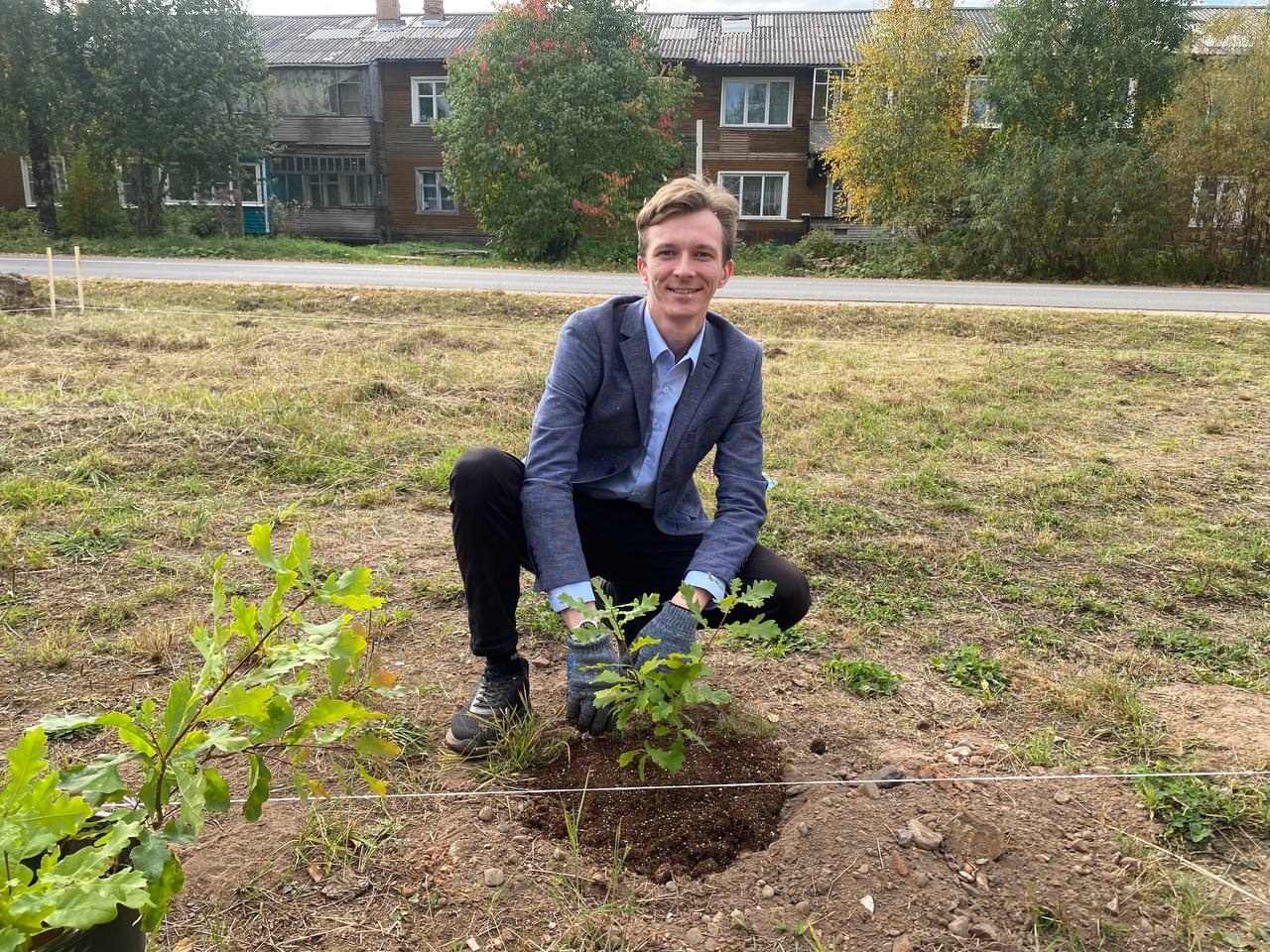 Руководитель молодежной организации ЛДПР Георгий Чернов стал инициатором высадки саженцев дубов в селе Карпогоры
