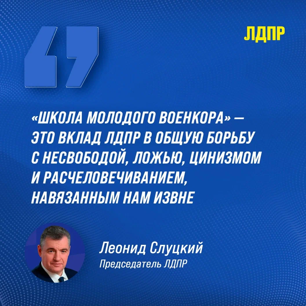 «Военкоры, работающие на передовой, – люди, которые не боятся говорить правду без прикрас. Они помогают противостоять в информационной войне коллективного Запада против России. Противопоставить ей можно и нужно системную работу патриотов в медиасфере, объективную картину происходящего. «Школа молодого военкора» – это вклад ЛДПР в общую борьбу с несвободой, ложью, цинизмом и расчеловечиванием, навязанным нам извне. Профессиональные журналисты, участники нашего совместного с военкорами проекта, расскажут, как говорить правду, выявлять фейки. Для некоторых выпускников школа станет билетом в профессию, многим поможет находить проверенную информацию и защищать нашу страну от информационных атак врага. На третий сезон мы приглашаем журналистов, фотографов, операторов, студентов этих специальностей, участников СВО и их близких. Мы ждём всех, кому важно доносить правду», – рассказал Председатель ЛДПР Леонид Слуцкий.