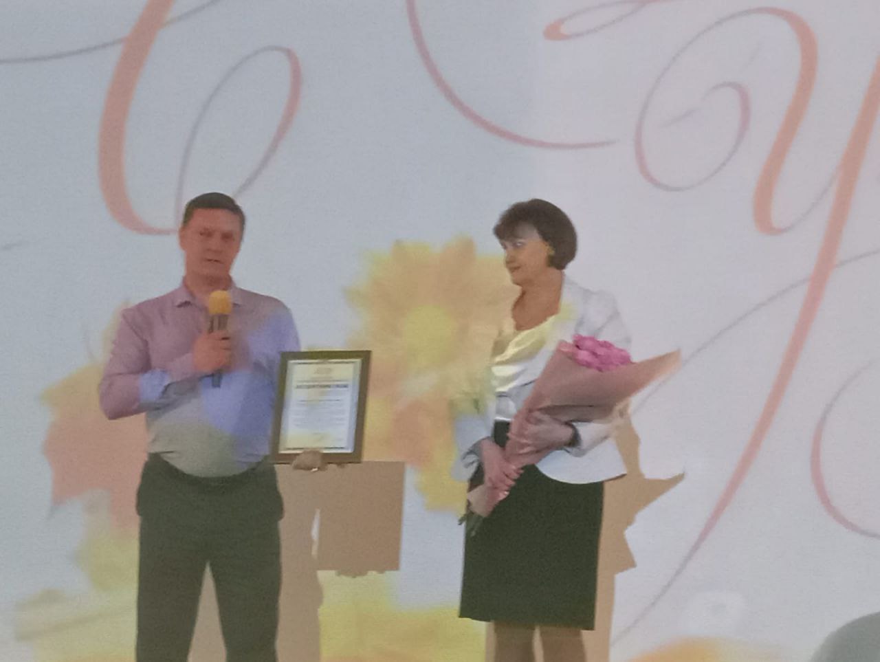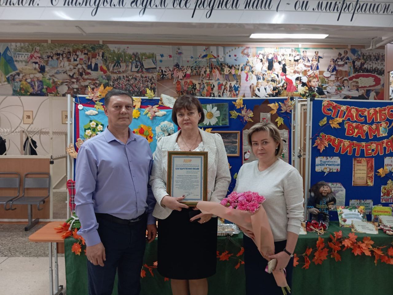 По завершении праздничного концерта, который был полон музыкальных и танцевальных номеров, Максим Попов поздравил коллектив школы с праздником. Вручил директору школы Корниловой Татьяне Николаевне Благодарственное письмо от лидера ЛДПР Леонида Слуцкого. В своем обращении он отметил важность профессии учителя и высокую значимость их труда.