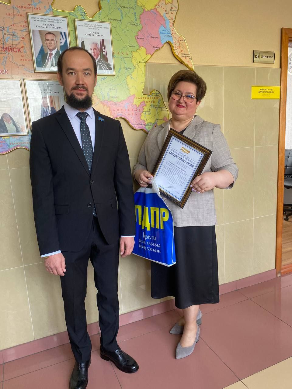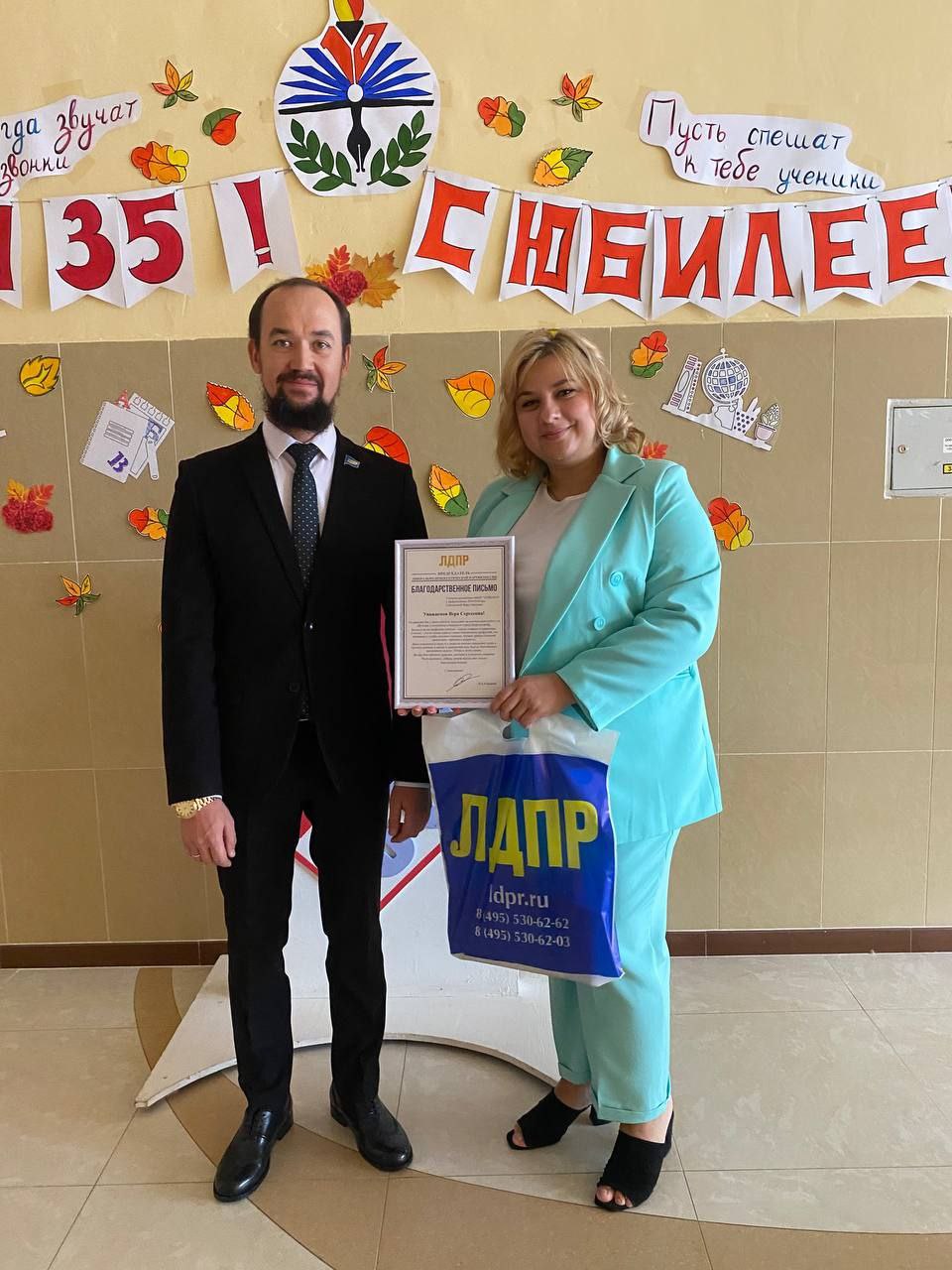 В Нефтеюганске координатор местного отделения ЛДПР Андрей Щегалькин поздравил учителей с их профессиональным праздником, и вручил Благодарственные письма от лидера партии ЛДПР Леонида Слуцкого