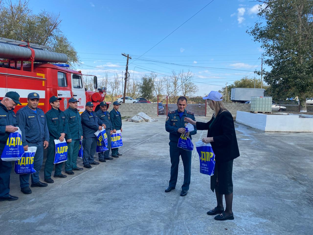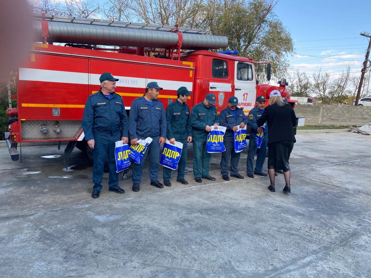 Координатор также вручила сотрудникам Пожарной службы сувениры и подарки от ЛДПР.