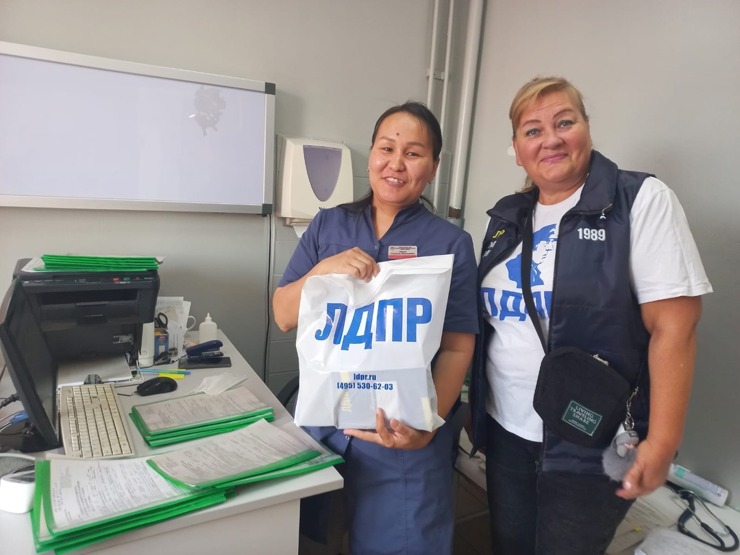 С добрыми пожеланиями поздравления от ЛДПР были переданы сегодня участковым врачам терапевтам клинико-диагностического центра №2 города Кызыла.