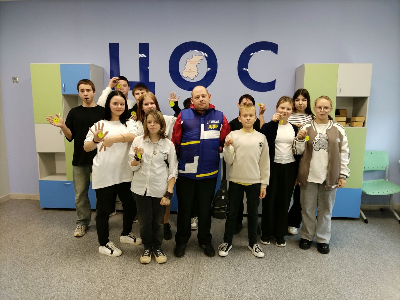 Активисты ЛДПР рассказывают детям, как не попасть под машину в тёмное время суток