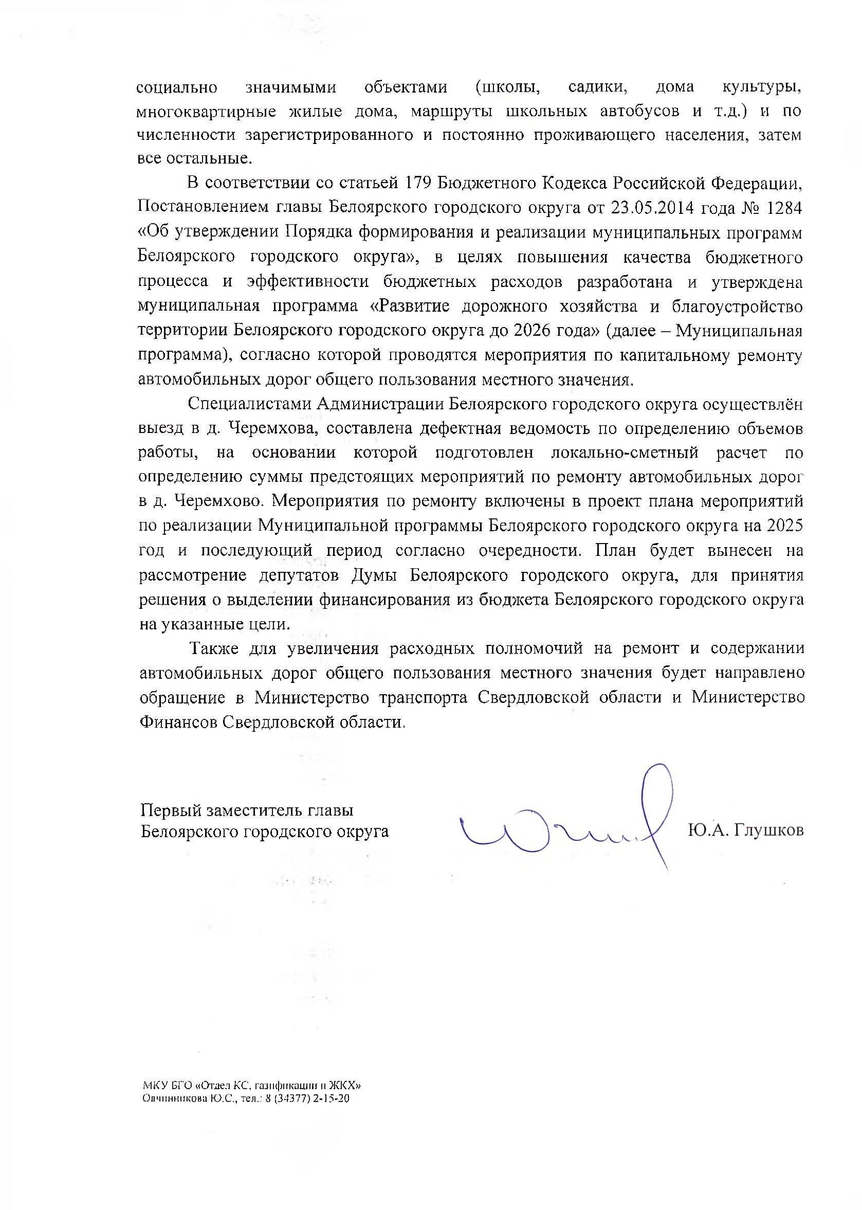 Благодаря депутатскому запросу в Администрацию Белоярского городского округа были осуществлены выездные работы специалистов в деревню Черемхова и составлена ведомость по определению объемов работы. В завершении, эту дорогу включили в проект плана мероприятий по реализации Муниципальной программы Белоярского городского округа на 2025 год и последующий период согласно очередности. Бюджетные средства, предусмотренные для ремонта, обеспечат не только восстановление дороги, но и долгосрочное улучшение транспортной доступности для жителей.