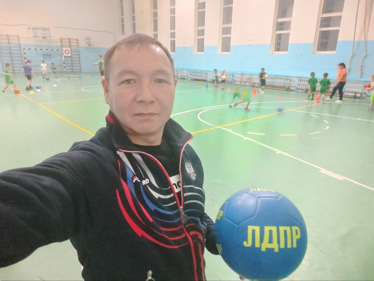 Руководитель аппарата Ямало-Ненецкого регионального отделения ЛДПР Сергей Вануйто посетил тренировку юных футболистов в Салехарде