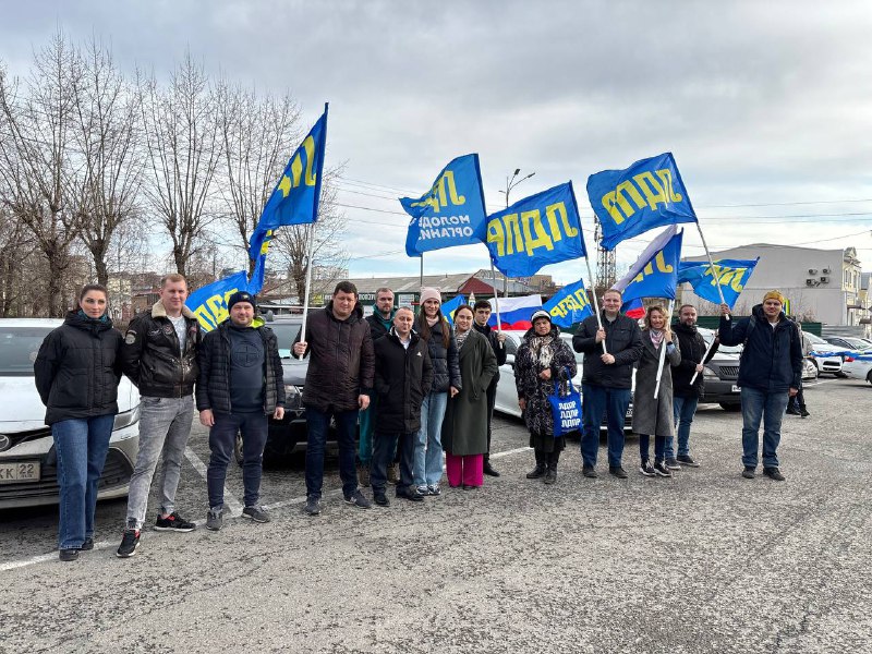 Автомобили, украшенные флагами и символикой партии, проехали по главным улицам Барнаула, привлекая внимание к идеям сплоченности и поддержки друг друга.