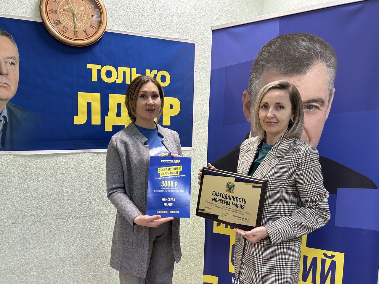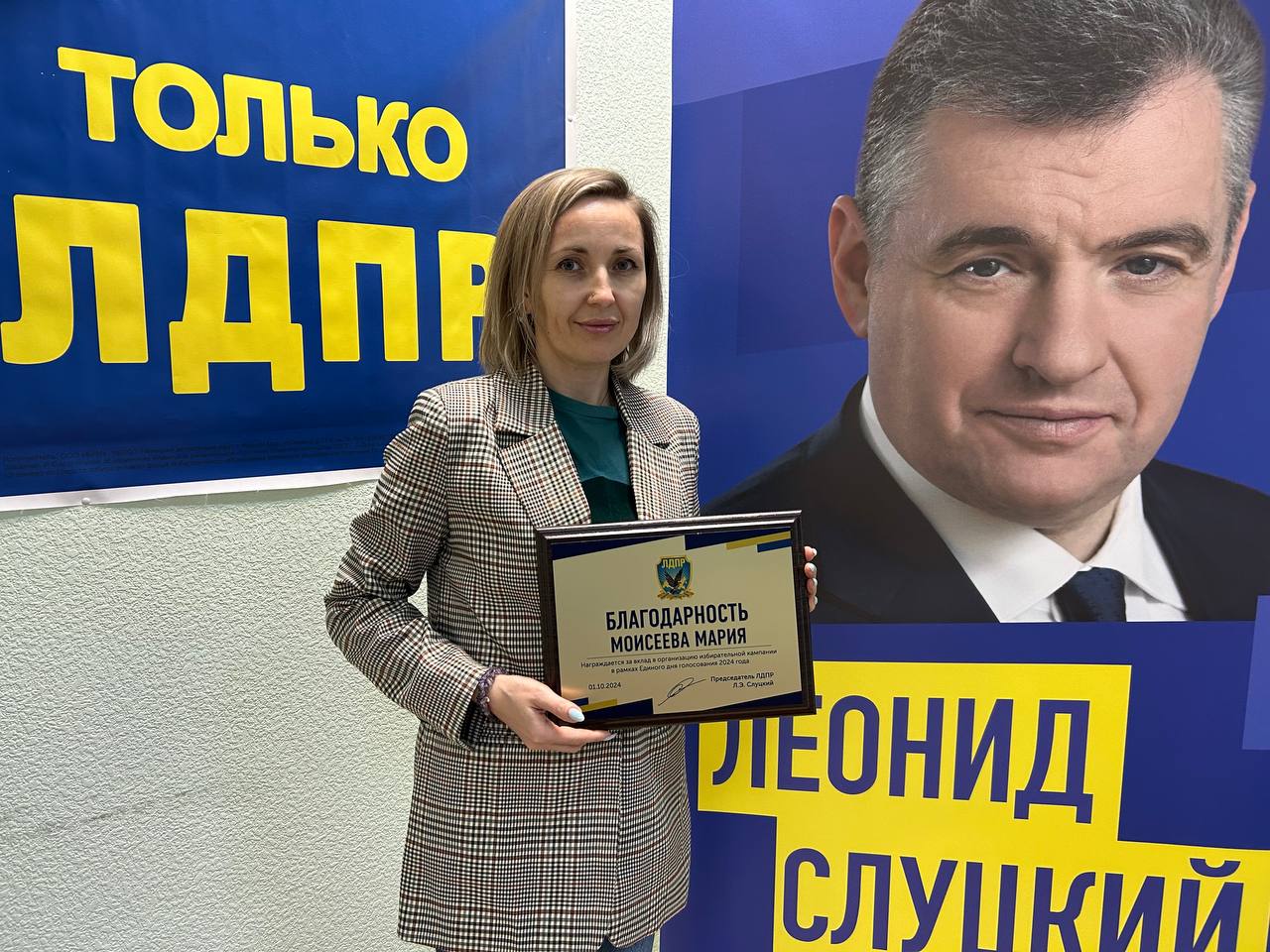 ЛДПР выражает благодарность Марии Моисеевой за вклад в избирательную кампанию в рамках Единого дня голосования 2024 года