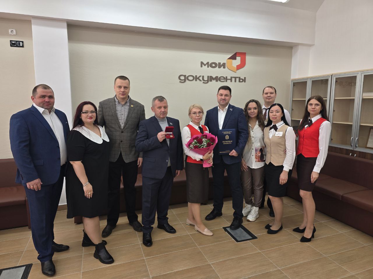 Партийцы посетили надымский МФЦ, где обсудили с коллективом достижения центра и вручили начальнику отдела предоставления услуг МФЦ Ирине Кондратьевой Почетную грамоту Законодательного Собрания ЯНАО.