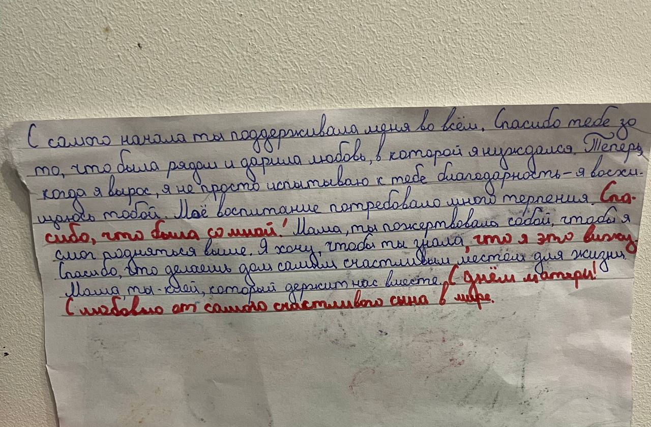 С утра поздравил любимую маму. Вы тоже не забудьте поздравить своих! Мамы всегда нуждаются во внимании со стороны своих детей. Спасибо вам за всё! P.S. Прикладываю фото поздравительного письма своего сына».