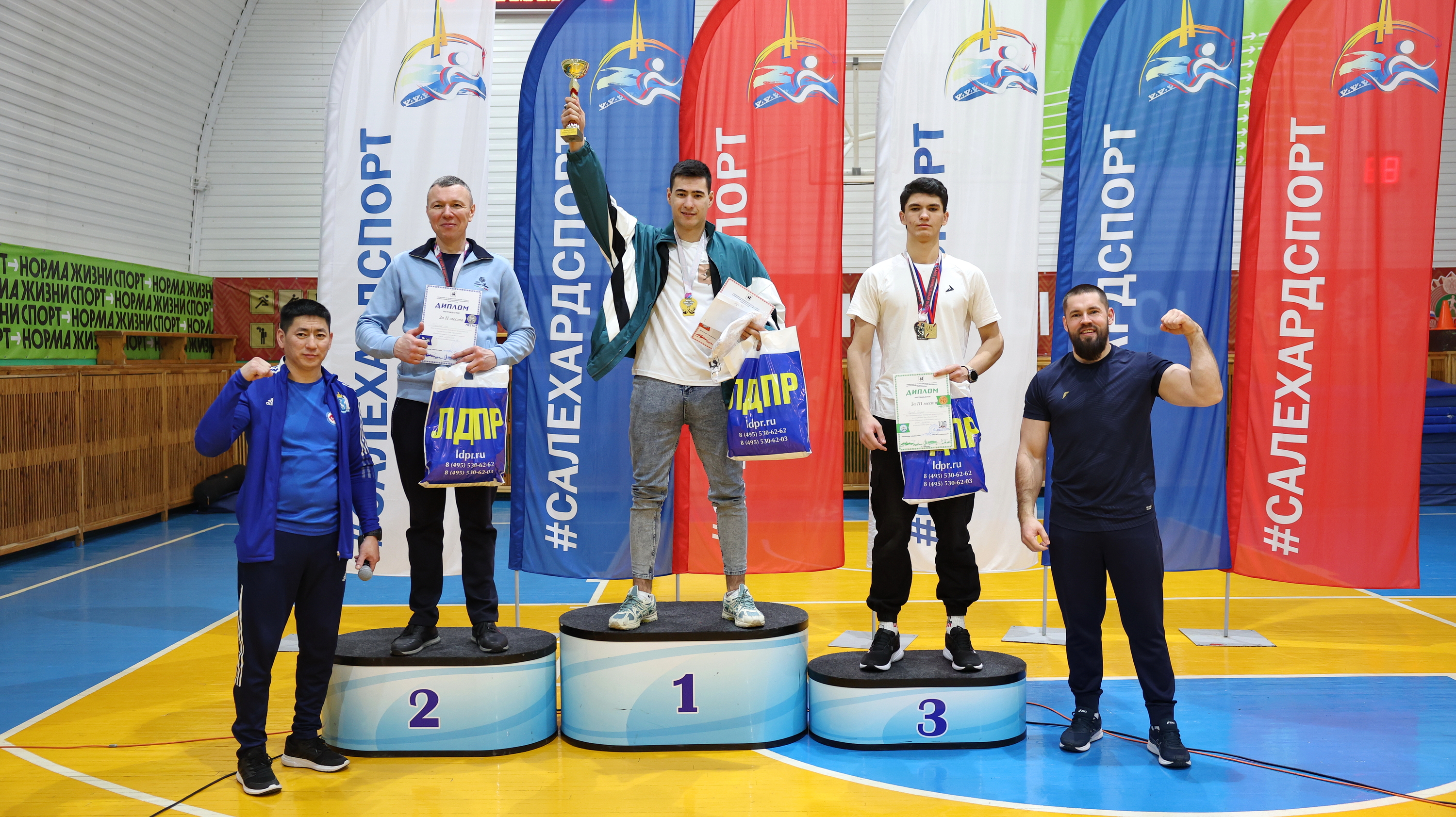 Сергей Созонов вручил благодарственное письмо от Председателя ЛДПР Леонида Слуцкого салехардскому клубу армрестлинга «Беркут 89». Также победители и призёры соревнований получили памятные подарки от ЛДПР.
