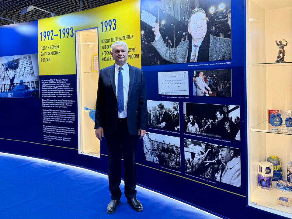 Депутат Юрий Яковле посетил основную площадку 55-го павильона ВДНХ, где проходит юбилейная выставка «ЛДПР: 35 лет с народом»