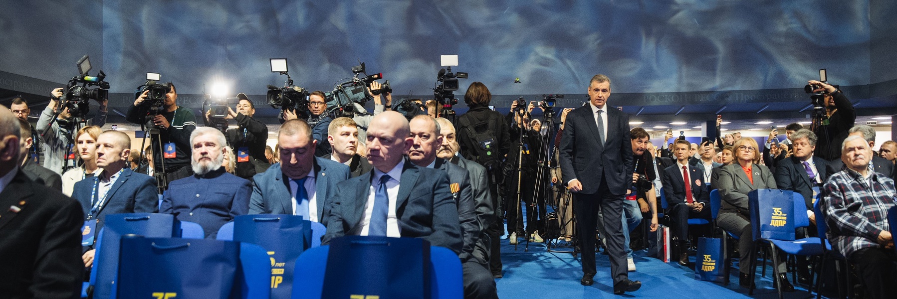 13 декабря в Москве в 55-м павильоне ВДНХ на полях выставки «ЛДПР: 35 лет с народом» прошло торжественное мероприятие, посвящённое юбилею партии. Участие в нем принял руководящий состав партии во главе с лидером Леонидом Слуцким, делегаты, депутаты из всех регионов, активисты и сторонники, ветераны, в том числе семейные династии партийцев, участники СВО, а также представители общественных организаций, молодёжного крыла партии, почётные гости. Всего порядка 1 000 человек со всех регионов страны
