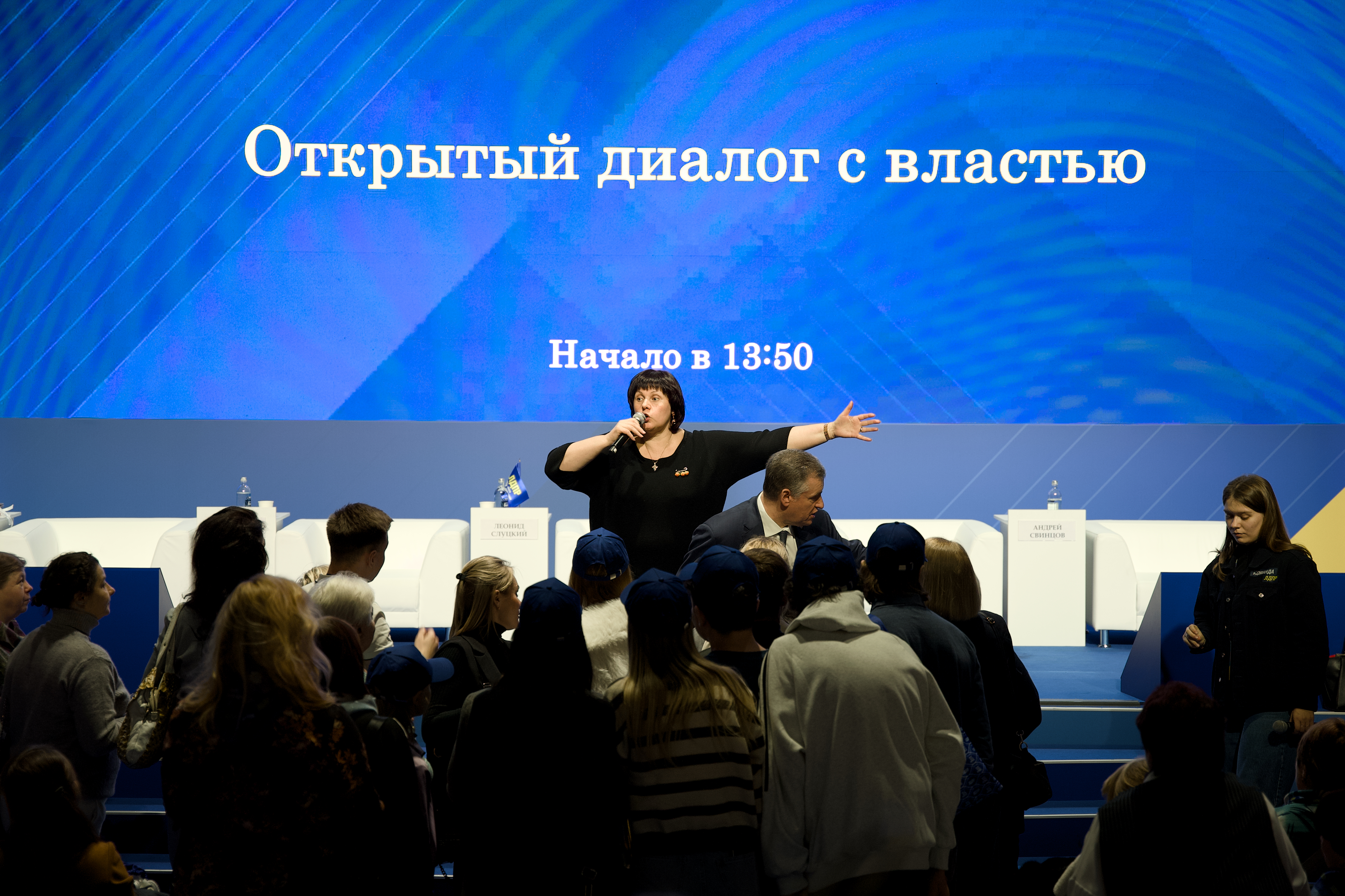 Участие в дискуссии также приняли депутаты фракции ЛДПР в Государственной Думе, члены Совета Федерации, также женщины- депутаты разного уровня, активистки партии и посетители выставки. Многие из них обратились к лидеру партии с важными вопросами, волнующими их. Женщины поднимали темы социальной сферы, экологии, здравоохранения и трудоустройства. Решение каждой проблемы в ЛДПР возьмут на контроль, подчеркнул лидер партии Леонид Слуцкий.