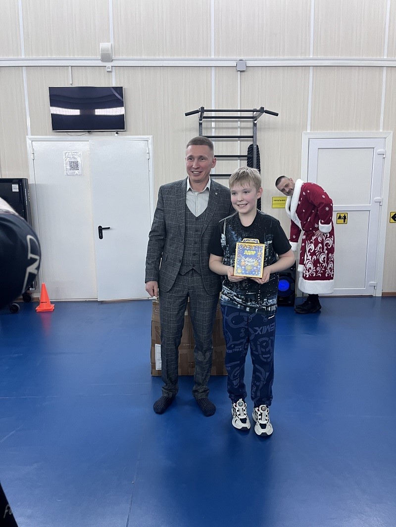 Депутат ЛДПР городской Думы Архипов поздравил взрослых и юных спортсменов и пожелал, чтобы в новом году каждый из воспитанников реализовал свой потенциал, достиг новых высот и обязательно испытал радость побед.