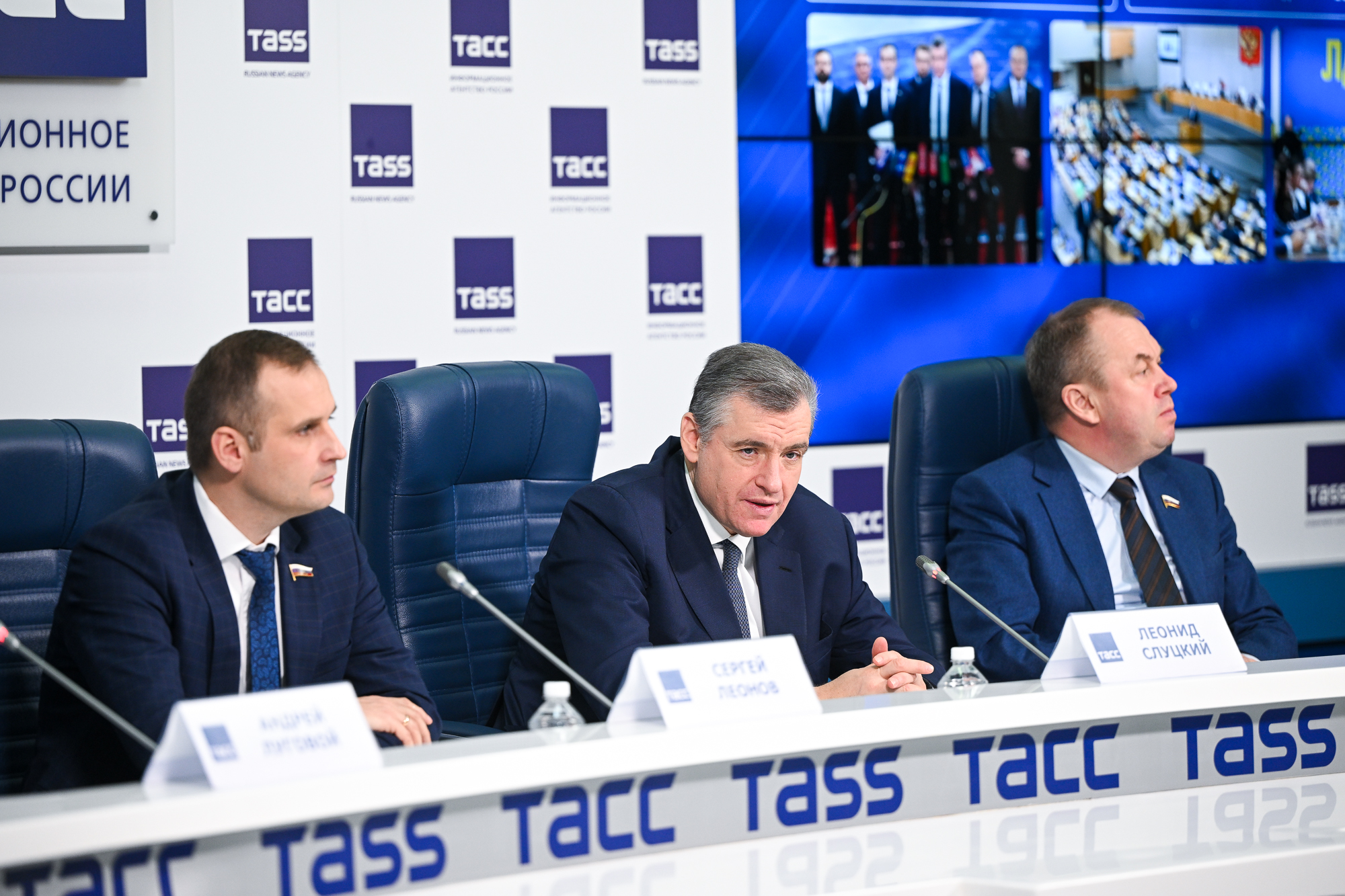 Вместе с Леонидом Слуцким на вопросы журналистов ответили и заместители руководителя Фракции ЛДПР, депутаты Андрей Луговой, Станислав Наумов и Сергей Леонов.