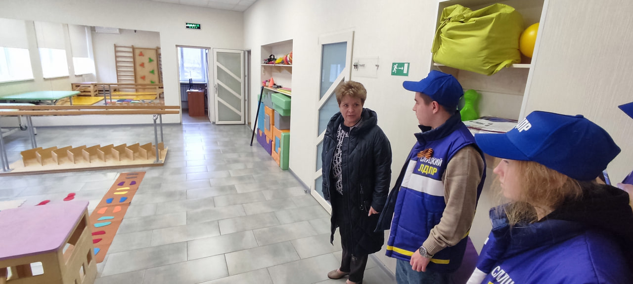 Татьяна Владимировна Можайко, заместитель директора по реабилитационной работе, и Светлана Павловна Самончук, заведующая отделения комплексной реабилитации детей-инвалидов г. Мелитополя, провели небольшую ознакомительную экскурсию для активистов ЛДПР по учреждению. Рассказали, чем и как занимаются здесь. Показали помещения в которых проходят занятия, как они оборудованы, познакомили с сотрудниками учреждения.