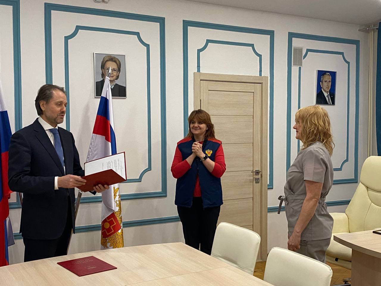 Владимир Сысоев поздравил работников с наступающими новогодними праздниками, поблагодарил медицинский персонал за высокое профессиональное мастерство и многолетний добросовестный труд в сфере здравоохранения и вручил заслуженные награды от Тюменской областной Думы.