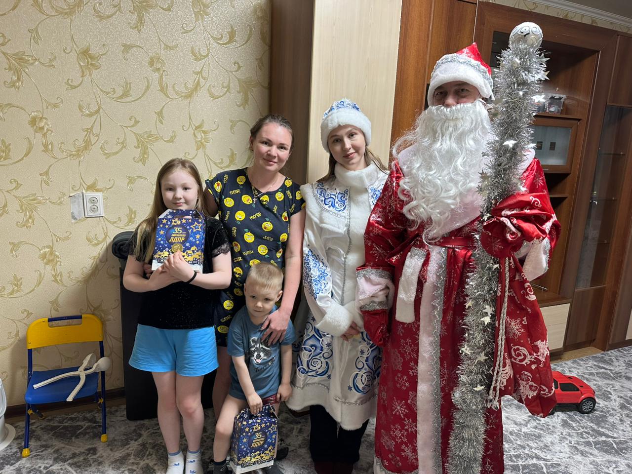 И вот, когда веселье достигло своего апогея, Дед Мороз объявил о вручении подарков. От имени ЛДПР, сказочный десант вручил каждому ребенку сладкий новогодний набор, чтобы праздничный стол был полон угощений. Глаза детей светились от радости, а на их лицах сияли улыбки.