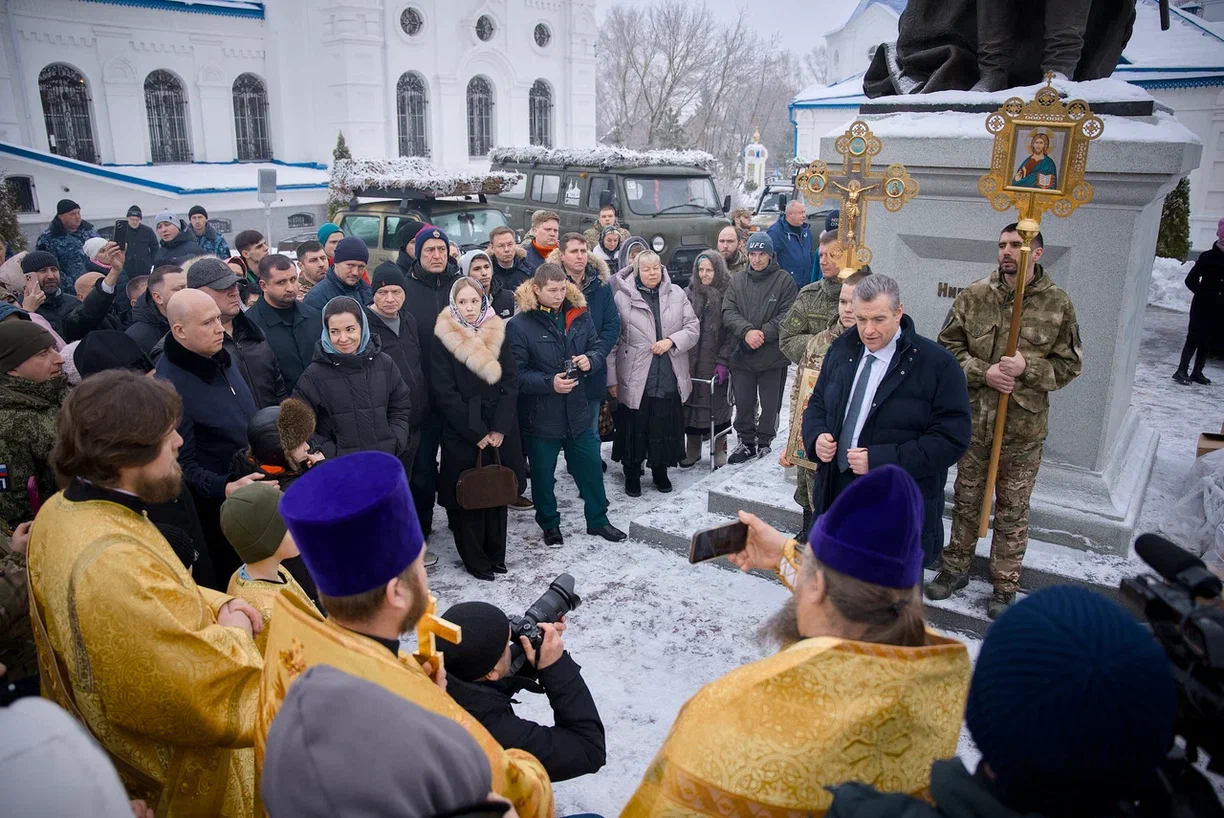 Настоятель церкви Черниговской иконы Божией Матери, отец Александр, поблагодарил Леонида Слуцкого за оказанную помощь и поддержку фронту.