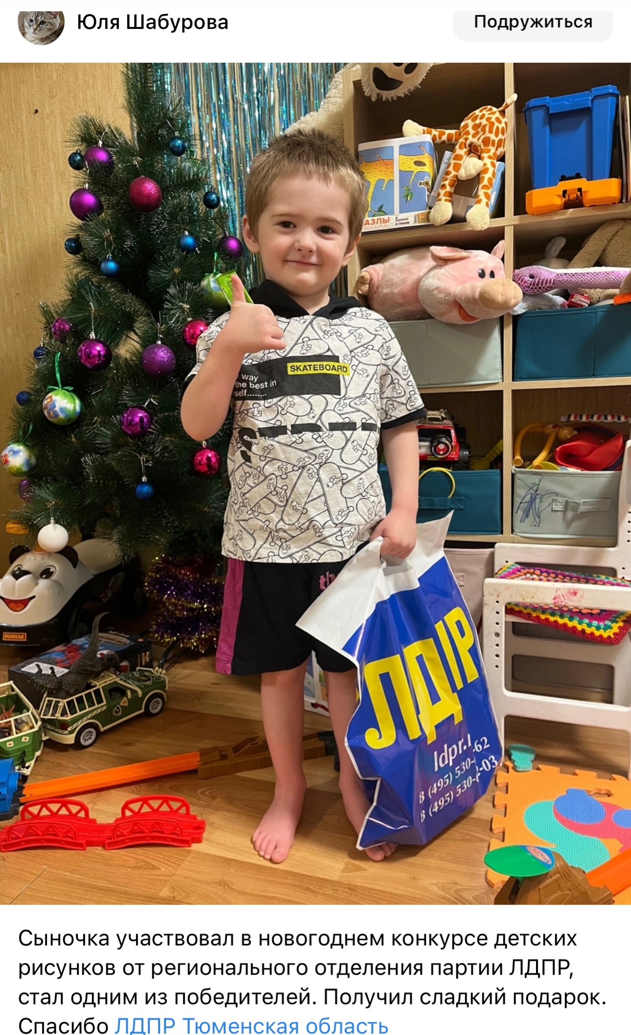 Юные художники совместно с родителями посетили Тюменское региональное отделение ЛДПР и получили заслуженные подарки от партии, а маленькие тюменцы в ответ подарили свои красивые рисунки ЛДПР на память