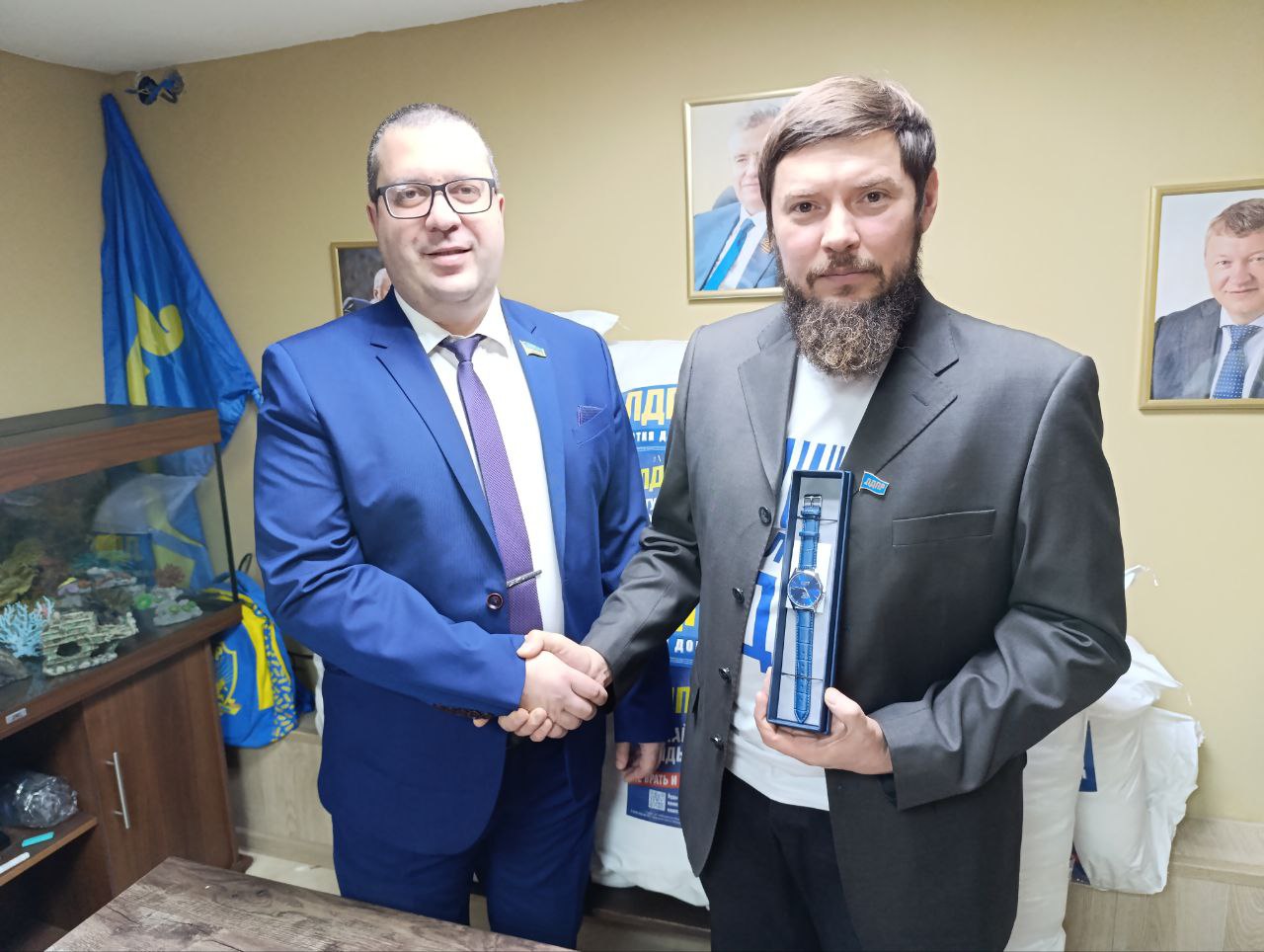 Виктор Сысун также вручил юбилейные часы двум активистам — Андрею Щегалькину и Ленару Рафикову — в знак признания их заслуг и участия в общественной жизни, а также в организации помощи для военных.